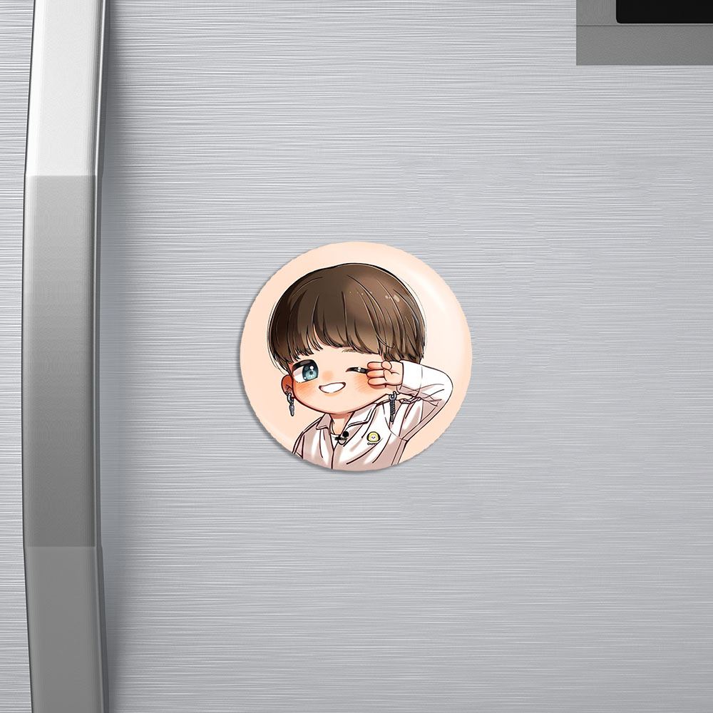 مگنت BT21 خندالو با روکش سلفون مات مخملی ضدخش و قطعه پشتی فلزی تولید شده است که آهنربای اتمی بکار برده شده در محصول، بصورت مخفی تعبیه شده ودیده نمی شود. ضمن اینکه گیرایی بسیار بالایی داشته و به هیچ عنوان از روی یخچال نمی افتد.