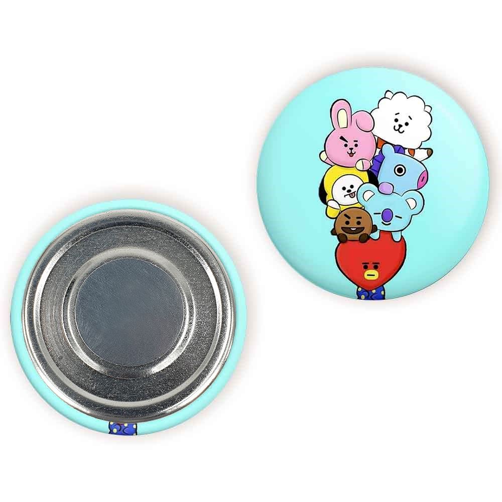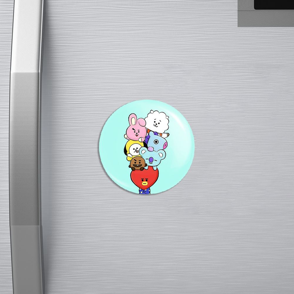 مگنت BT21 خندالو با روکش سلفون مات مخملی ضدخش و قطعه پشتی فلزی تولید شده است که آهنربای اتمی بکار برده شده در محصول، بصورت مخفی تعبیه شده ودیده نمی شود. ضمن اینکه گیرایی بسیار بالایی داشته و به هیچ عنوان از روی یخچال نمی افتد.