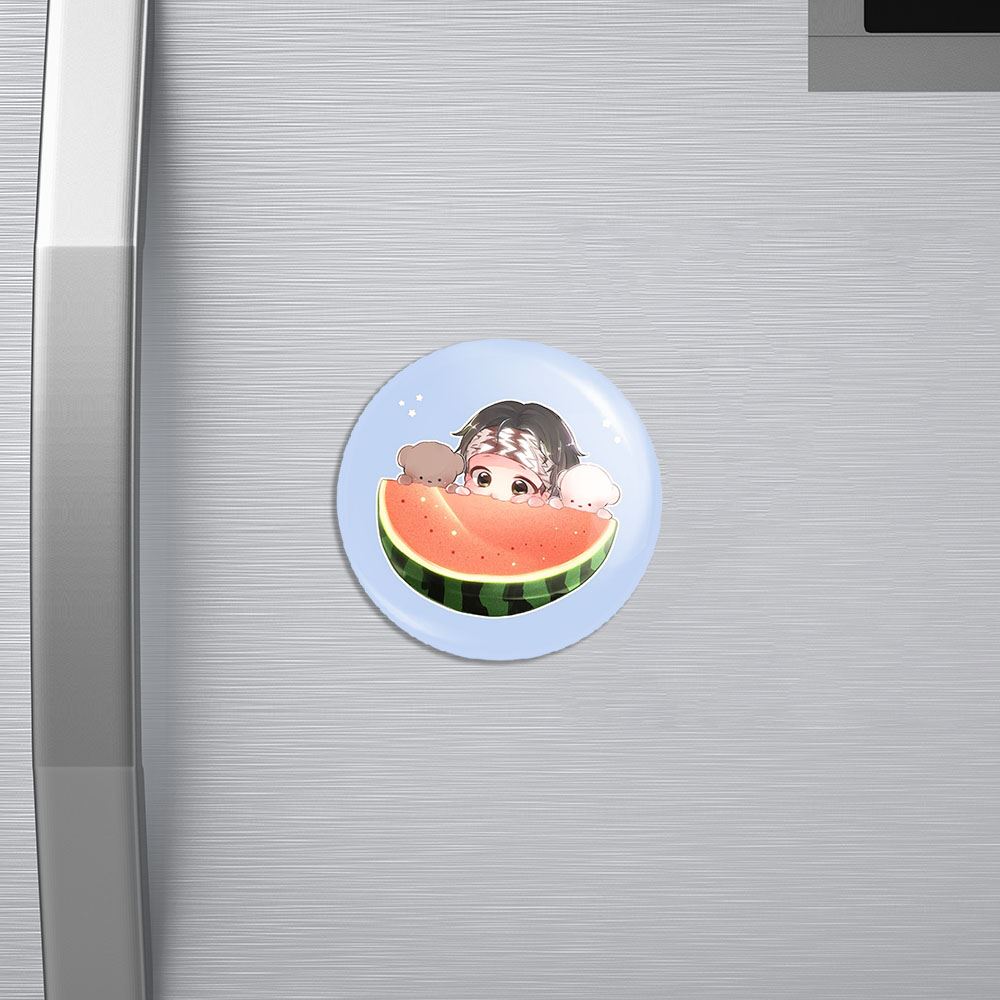 مگنت BT21 خندالو با روکش سلفون مات مخملی ضدخش و قطعه پشتی فلزی تولید شده است که آهنربای اتمی بکار برده شده در محصول، بصورت مخفی تعبیه شده ودیده نمی شود. ضمن اینکه گیرایی بسیار بالایی داشته و به هیچ عنوان از روی یخچال نمی افتد.