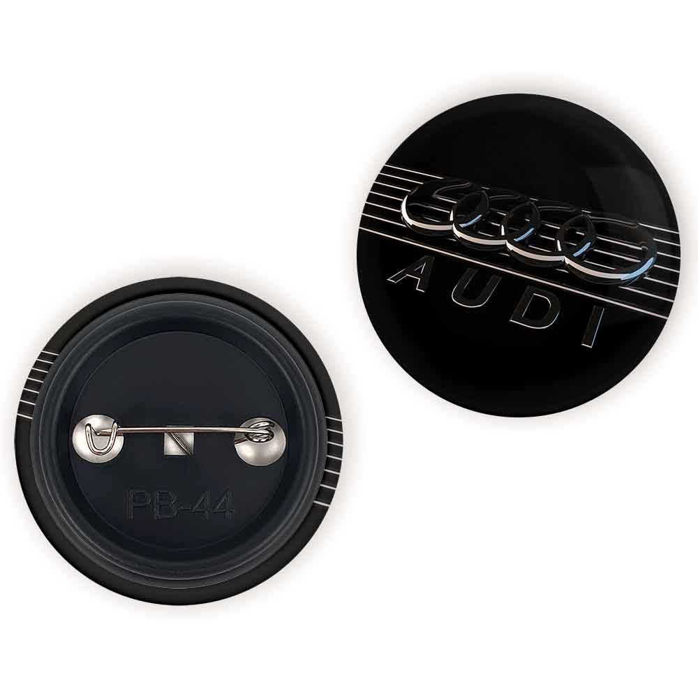 پیکسل 44 میلی متری آئودی Audi خندالو با روکش سلفون حرارتی مات مخملی ضدخش و قطعه پشتی رنگی تولید شده است.پلاستیکی پشت پیکسل با سوزن یک تکه ثابت و بدون لغزش و جا به جایی، ایستایی بسیار بهتری نسبت به پشتی فلزی پیکسل دارند که این مهم در تولید این محصول نیز رعایت شده است.