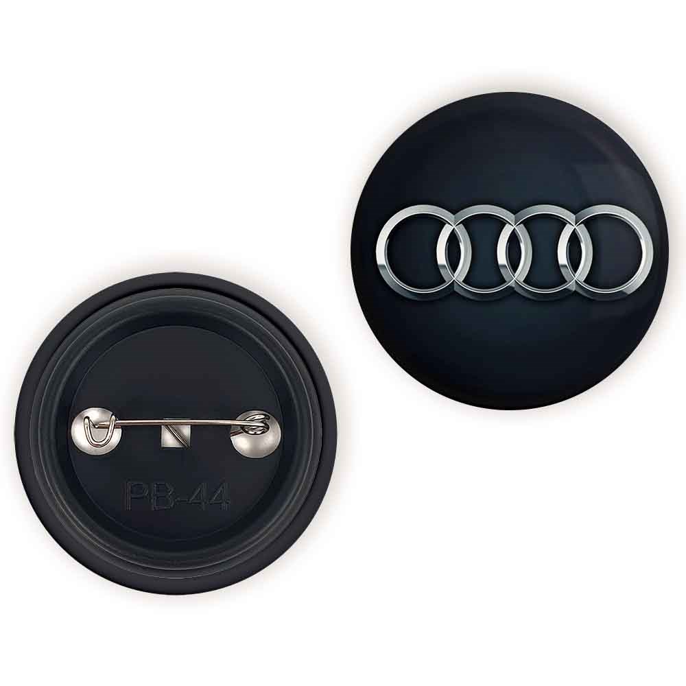 پیکسل 44 میلی متری آئودی Audi خندالو با روکش سلفون حرارتی مات مخملی ضدخش و قطعه پشتی رنگی تولید شده است.پلاستیکی پشت پیکسل با سوزن یک تکه ثابت و بدون لغزش و جا به جایی، ایستایی بسیار بهتری نسبت به پشتی فلزی پیکسل دارند که این مهم در تولید این محصول نیز رعایت شده است.