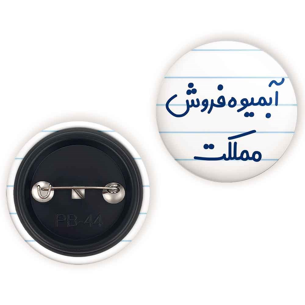 پیکسل 44 میلی متری آبمیوه فروش مملکت خندالو با روکش سلفون حرارتی مات مخملی ضدخش و قطعه پشتی رنگی تولید شده است.پلاستیکی پشت پیکسل با سوزن یک تکه ثابت و بدون لغزش و جا به جایی، ایستایی بسیار بهتری نسبت به پشتی فلزی پیکسل دارند که این مهم در تولید این محصول نیز رعایت شده است.