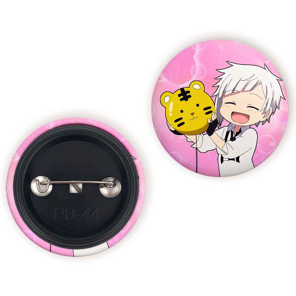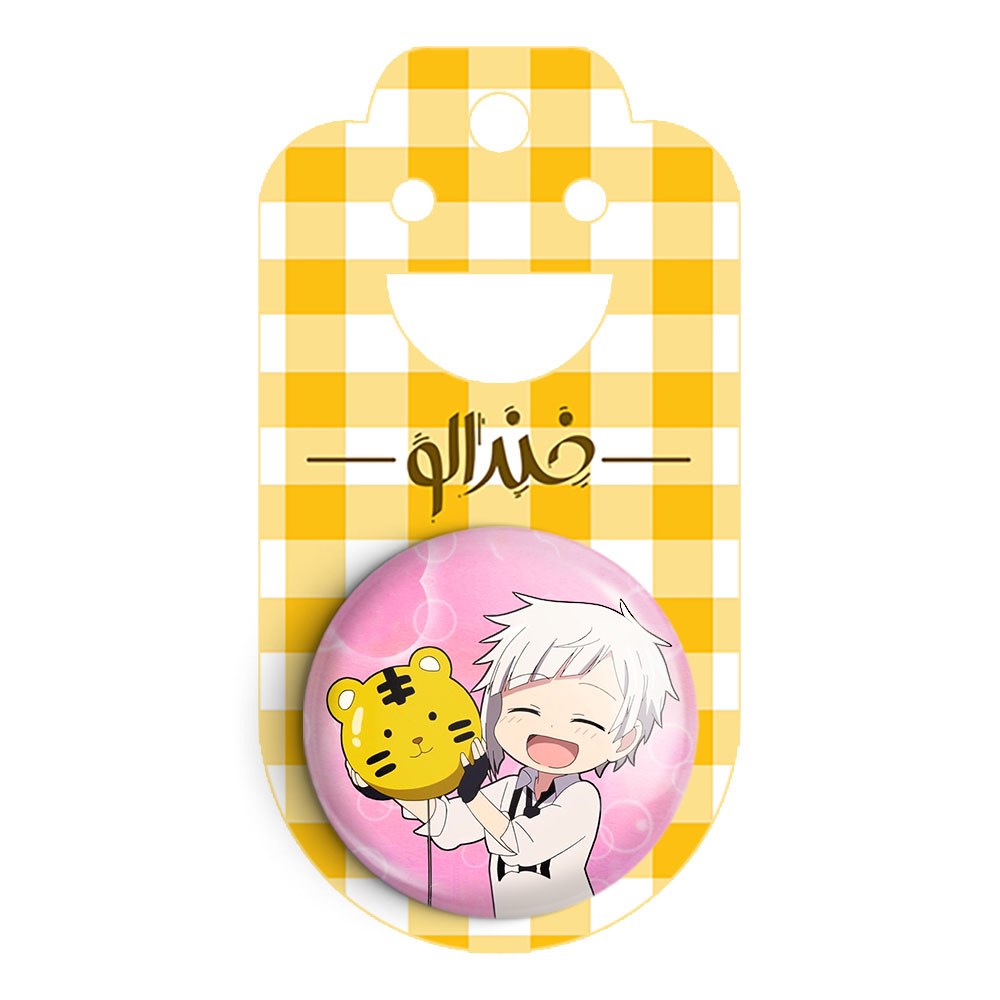 پیکسل 44 میلی متری آتسوشی انیمه سگ های ولگرد بانگو خندالو با روکش سلفون حرارتی مات مخملی ضدخش و قطعه پشتی رنگی تولید شده است.پلاستیکی پشت پیکسل با سوزن یک تکه ثابت و بدون لغزش و جا به جایی، ایستایی بسیار بهتری نسبت به پشتی فلزی پیکسل دارند که این مهم در تولید این محصول نیز رعایت شده است.