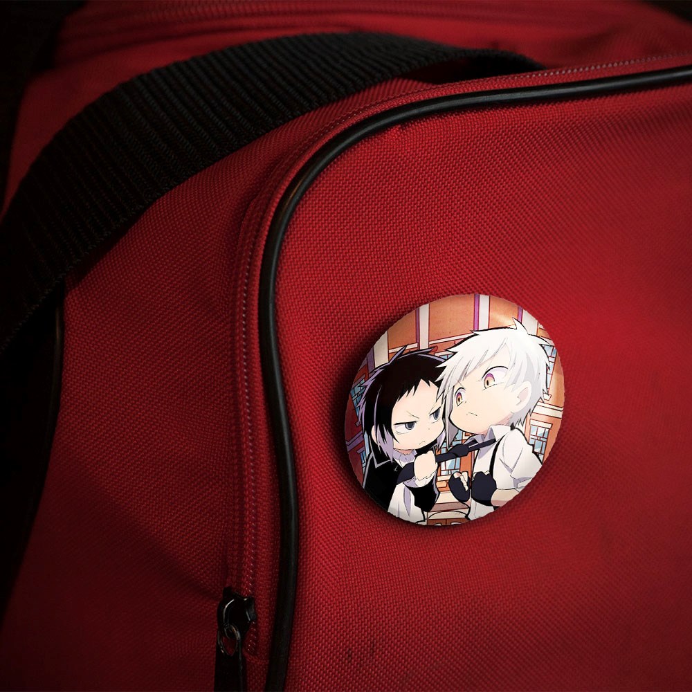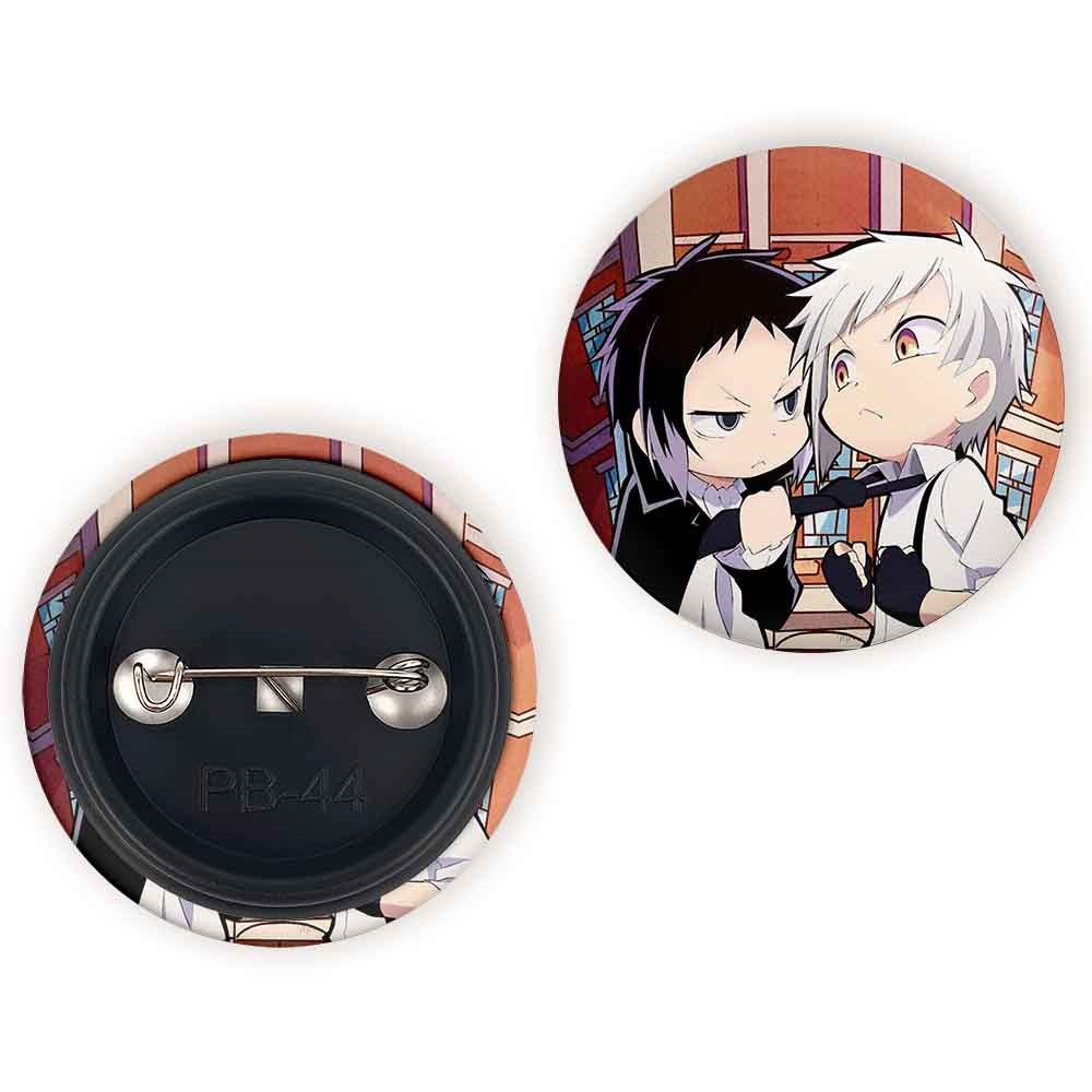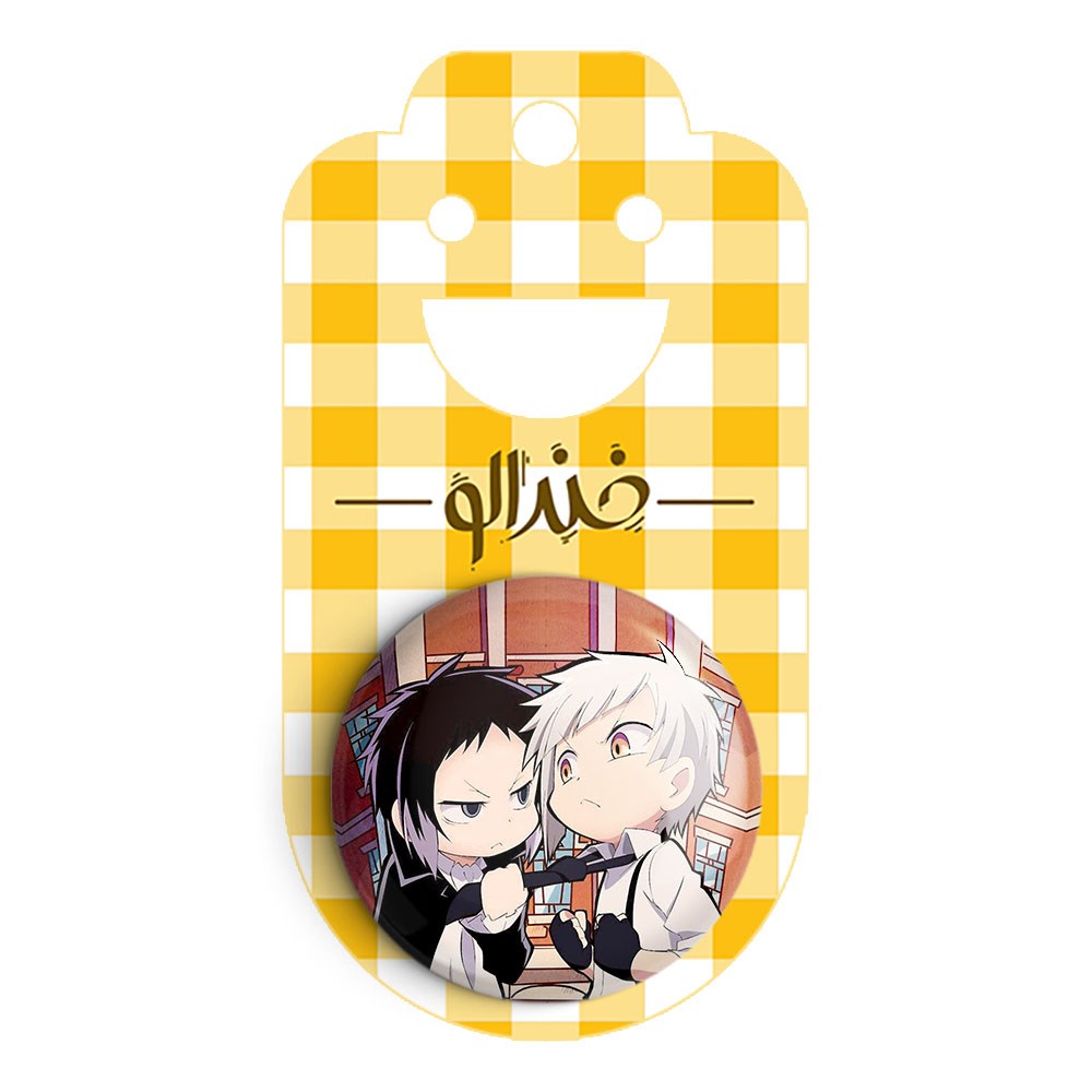 پیکسل 44 میلی متری آتسوشی و آکوتاگاوا انیمه سگ های ولگرد بانگو خندالو با روکش سلفون حرارتی مات مخملی ضدخش و قطعه پشتی رنگی تولید شده است.پلاستیکی پشت پیکسل با سوزن یک تکه ثابت و بدون لغزش و جا به جایی، ایستایی بسیار بهتری نسبت به پشتی فلزی پیکسل دارند که این مهم در تولید این محصول نیز رعایت شده است.