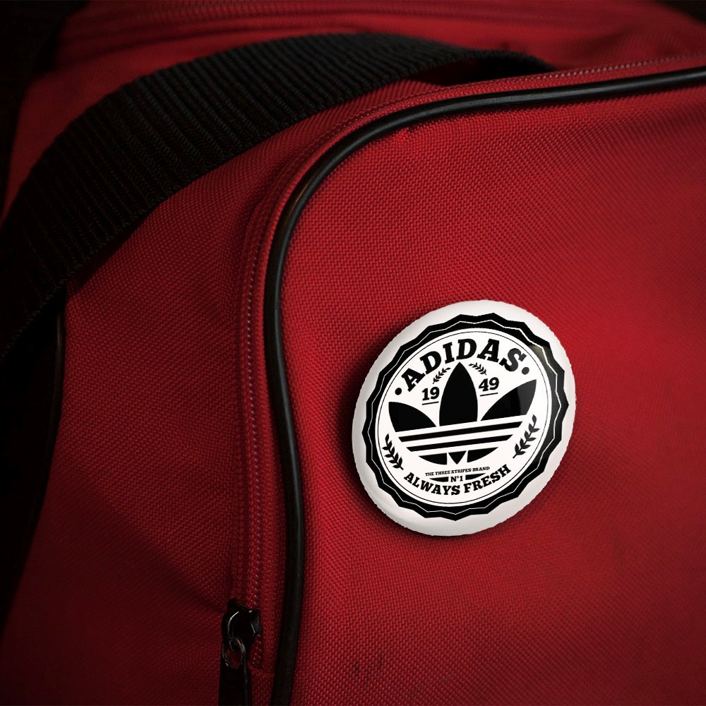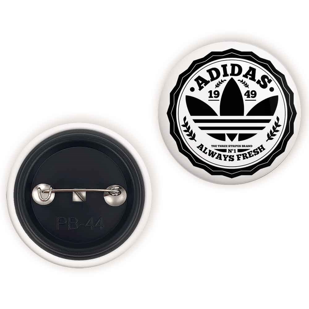 پیکسل 44 میلی متری آدیداس Adidas خندالو با روکش سلفون حرارتی مات مخملی ضدخش و قطعه پشتی رنگی تولید شده است.پلاستیکی پشت پیکسل با سوزن یک تکه ثابت و بدون لغزش و جا به جایی، ایستایی بسیار بهتری نسبت به پشتی فلزی پیکسل دارند که این مهم در تولید این محصول نیز رعایت شده است.