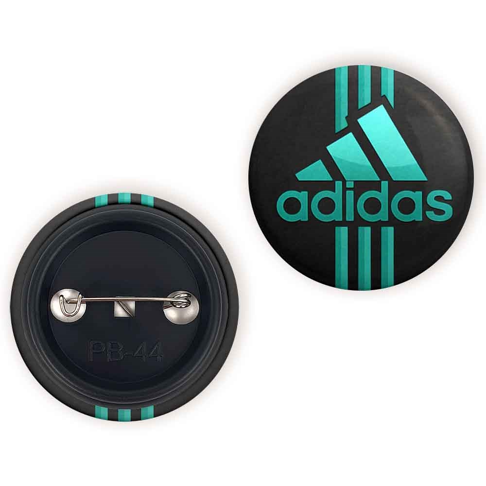 پیکسل 44 میلی متری آدیداس Adidas خندالو با روکش سلفون حرارتی مات مخملی ضدخش و قطعه پشتی رنگی تولید شده است.پلاستیکی پشت پیکسل با سوزن یک تکه ثابت و بدون لغزش و جا به جایی، ایستایی بسیار بهتری نسبت به پشتی فلزی پیکسل دارند که این مهم در تولید این محصول نیز رعایت شده است.