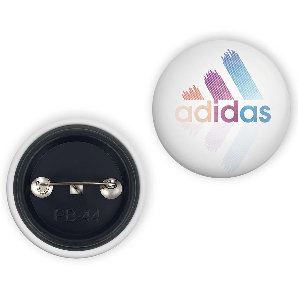 پیکسل 44 میلی متری آدیداس (Adidas)خندالو با روکش سلفون حرارتی مات مخملی ضدخش و قطعه پشتی رنگی تولید شده است. قطعات پلاستیکی پشت پیکسل با سوزن یک تکه ثابت و بدون لغزش و جا به جایی، ایستایی بسیار بهتری نسبت به پشتی فلزی پیکسل دارند که این مهم در تولید این محصول نیز رعایت شده است.
