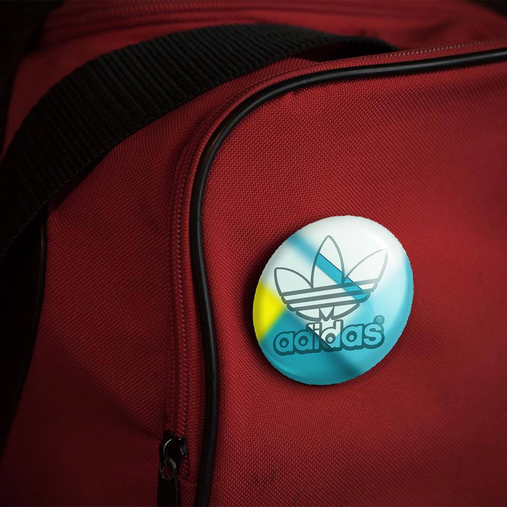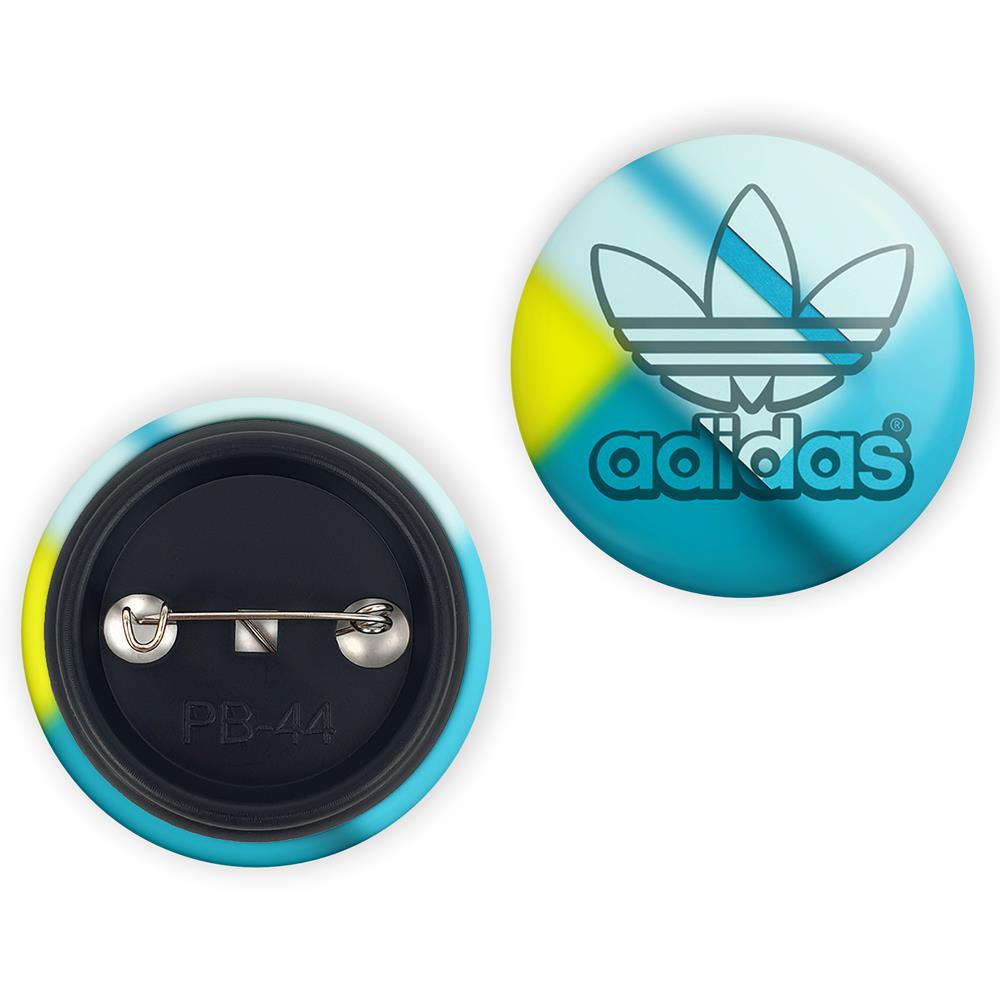 پیکسل 44 میلی متری آدیداس (Adidas)خندالو با روکش سلفون حرارتی مات مخملی ضدخش و قطعه پشتی رنگی تولید شده است. قطعات پلاستیکی پشت پیکسل با سوزن یک تکه ثابت و بدون لغزش و جا به جایی، ایستایی بسیار بهتری نسبت به پشتی فلزی پیکسل دارند که این مهم در تولید این محصول نیز رعایت شده است.