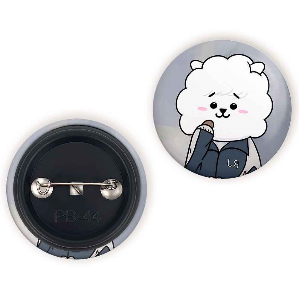 پیکسل 44 میلی متری آرجی BT21 Rj خندالو با روکش سلفون حرارتی مات مخملی ضدخش و قطعه پشتی رنگی تولید شده است.پلاستیکی پشت پیکسل با سوزن یک تکه ثابت و بدون لغزش و جا به جایی، ایستایی بسیار بهتری نسبت به پشتی فلزی پیکسل دارند که این مهم در تولید این محصول نیز رعایت شده است.