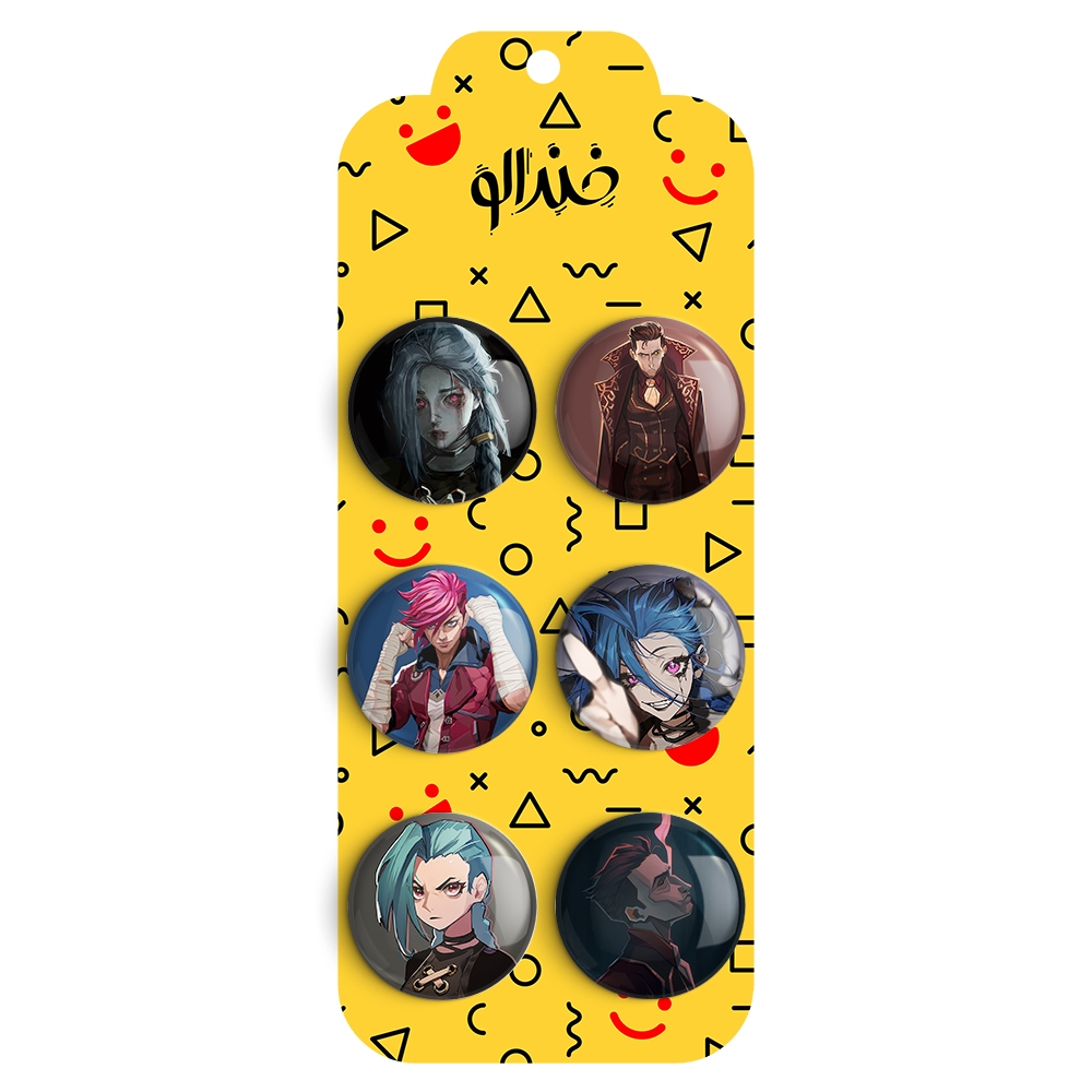 مجموعه 6 عددی پیکسل خندالو طرح آرکین (Arcane) با روکش سلفون حرارتی براق ضدخش و قطعه پشتی رنگی تولید شده است. قطعات پشتی از میان 6 رنگ سفید، مشکی، صورتی، زرد، آبی و قرمز که با توجه به نوع و رنگبندی طرح روی پیکسل انتخاب شده اند تولید می شود و در هر بسته بندی مطابق عکس محصول می باشد.