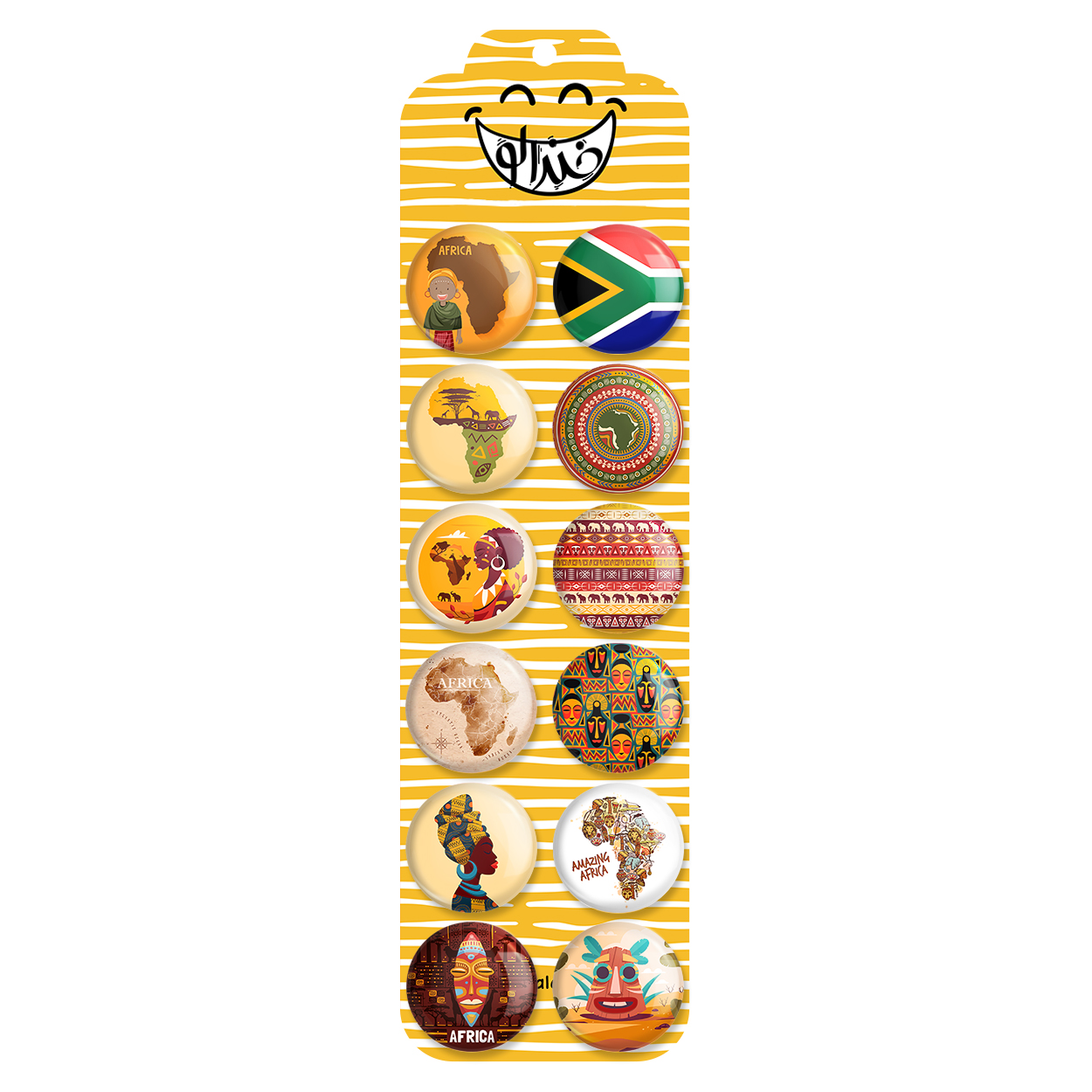 پک 12 عددی پیکسل خندالو طرح آفریقا با روکش سلفون حرارتی براق ضدخش و قطعه پشتی رنگی تولید شده است. قطعات پشتی از میان 6 رنگ سفید، مشکی، صورتی، زرد، آبی و قرمز که با توجه به نوع و رنگبندی طرح روی پیکسل انتخاب شده اند تولید می شود و در هر بسته بندی مطابق عکس محصول می باشد. قطعات پلاستیکی پشت پیکسل با سوزن یک تکه ثابت و بدون لغزش و جا به جایی، ایستایی بسیار بهتری نسبت به پشتی فلزی پیکسل دارند که این مهم در تولید این محصول نیز رعایت شده است. چاپ پیکسل طرح آفریقا بسته ۱۲ عددی نیز با دستگاه های استاندارد و با بهترین سطح کیفی صورت گرفته و طرح با شفافیتی مثال زدنی و با سلفونی بدون شکست نور بر روی پیکسل نقش بسته است.