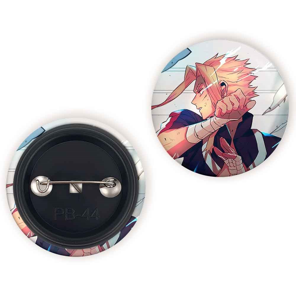 پیکسل 44 میلی متری آلمایت انیمه آکادمی قهرمان من خندالو با روکش سلفون حرارتی مات مخملی ضدخش و قطعه پشتی رنگی تولید شده است.پلاستیکی پشت پیکسل با سوزن یک تکه ثابت و بدون لغزش و جا به جایی، ایستایی بسیار بهتری نسبت به پشتی فلزی پیکسل دارند که این مهم در تولید این محصول نیز رعایت شده است.