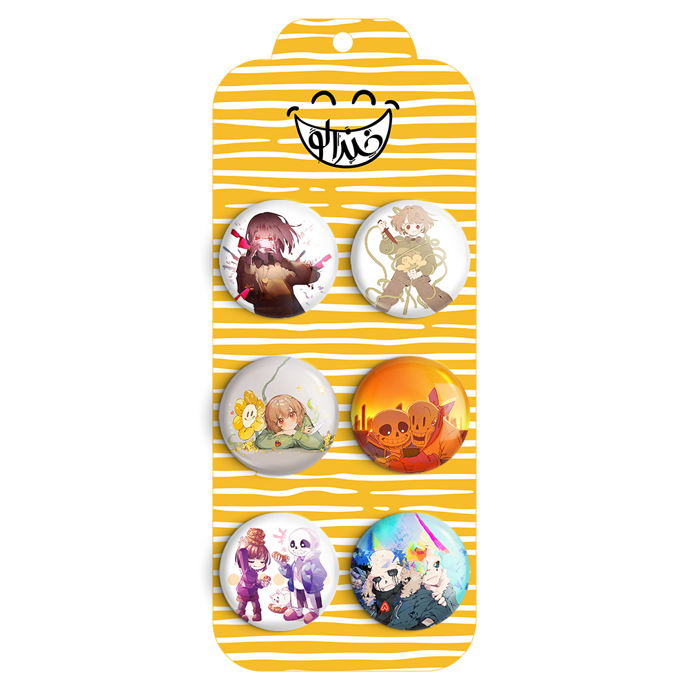 مجموعه 6 عددی پیکسل خندالو طرح آندرتیل (Undertale) با روکش سلفون حرارتی براق ضدخش و قطعه پشتی رنگی تولید شده است. قطعات پشتی از میان 6 رنگ سفید، مشکی، صورتی، زرد، آبی و قرمز که با توجه به نوع و رنگبندی طرح روی پیکسل انتخاب شده اند تولید می شود و در هر بسته بندی مطابق عکس محصول می باشد.