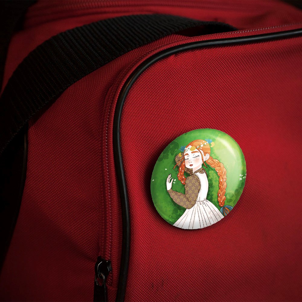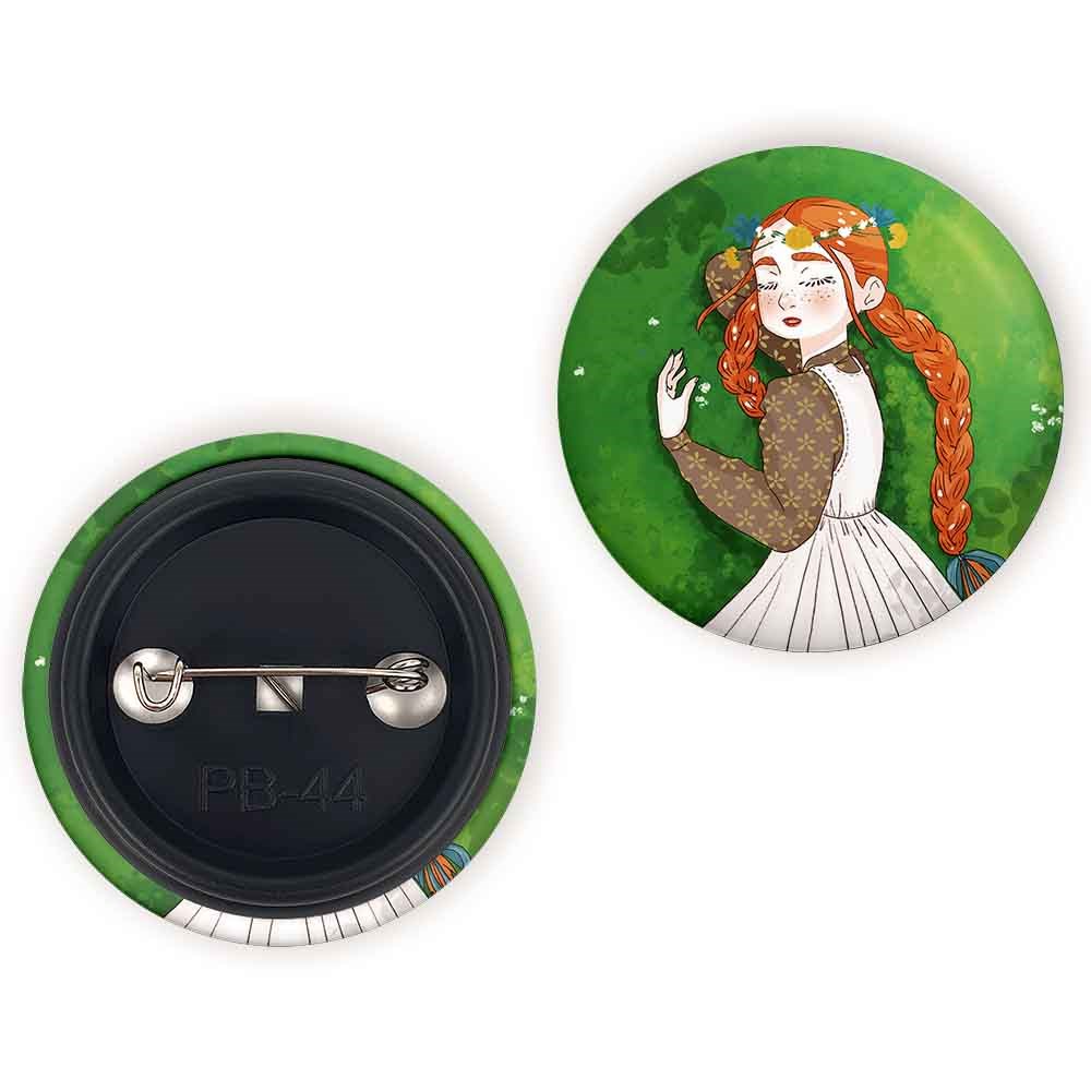 پیکسل 44 میلی متری آن شرلی خندالو با روکش سلفون حرارتی مات مخملی ضدخش و قطعه پشتی رنگی تولید شده است.پلاستیکی پشت پیکسل با سوزن یک تکه ثابت و بدون لغزش و جا به جایی، ایستایی بسیار بهتری نسبت به پشتی فلزی پیکسل دارند که این مهم در تولید این محصول نیز رعایت شده است.