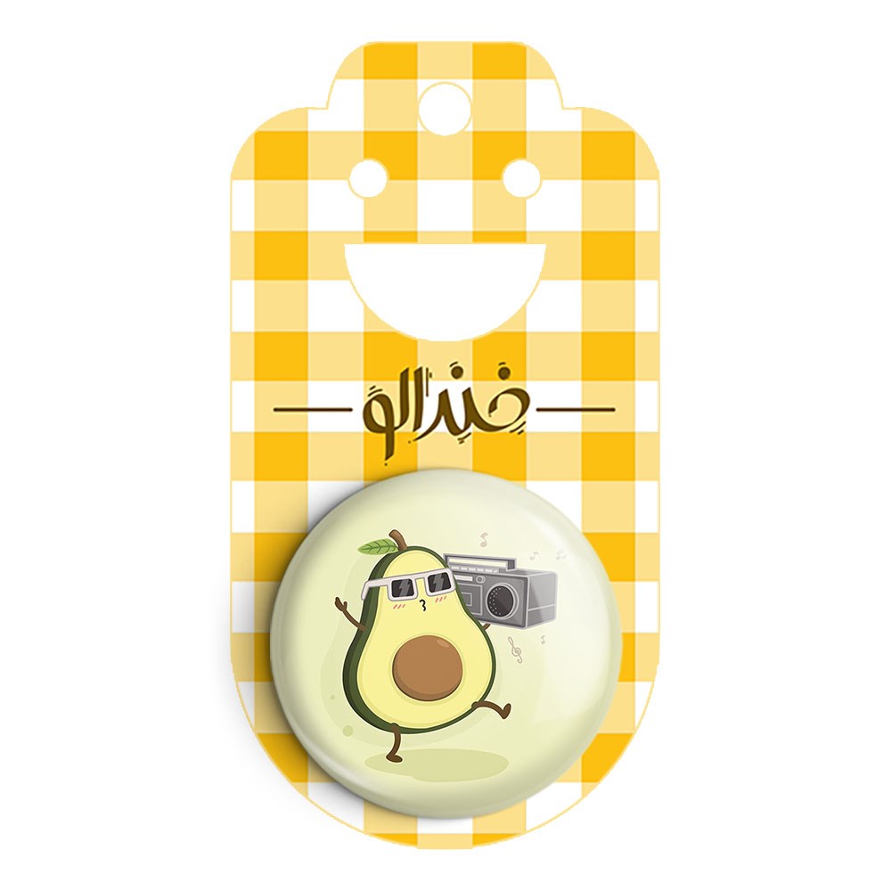 پیکسل 44 میلی متری آووکادو خندالو با روکش سلفون حرارتی مات مخملی ضدخش و قطعه پشتی رنگی تولید شده است.پلاستیکی پشت پیکسل با سوزن یک تکه ثابت و بدون لغزش و جا به جایی، ایستایی بسیار بهتری نسبت به پشتی فلزی پیکسل دارند که این مهم در تولید این محصول نیز رعایت شده است.