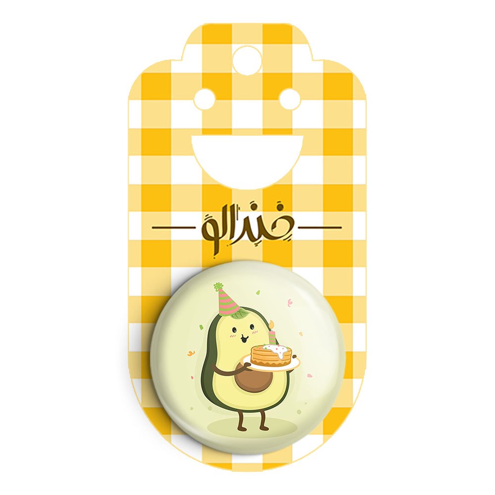 پیکسل 44 میلی متری آووکادو خندالو با روکش سلفون حرارتی مات مخملی ضدخش و قطعه پشتی رنگی تولید شده است.پلاستیکی پشت پیکسل با سوزن یک تکه ثابت و بدون لغزش و جا به جایی، ایستایی بسیار بهتری نسبت به پشتی فلزی پیکسل دارند که این مهم در تولید این محصول نیز رعایت شده است.
