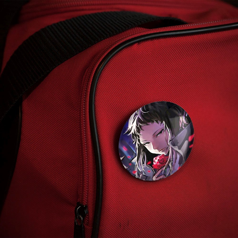 پیکسل 44 میلی متری آکوتاگوا انیمه سگ های ولگرد بانگو خندالو با روکش سلفون حرارتی مات مخملی ضدخش و قطعه پشتی رنگی تولید شده است.پلاستیکی پشت پیکسل با سوزن یک تکه ثابت و بدون لغزش و جا به جایی، ایستایی بسیار بهتری نسبت به پشتی فلزی پیکسل دارند که این مهم در تولید این محصول نیز رعایت شده است.