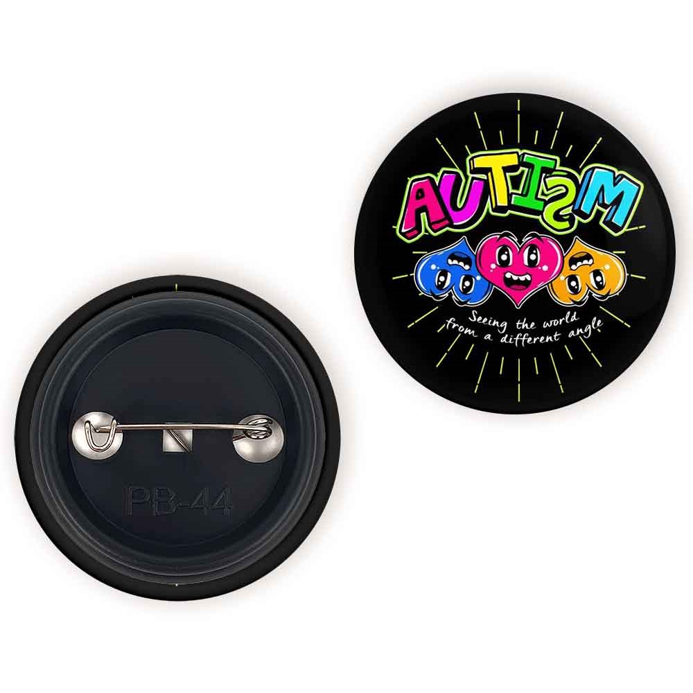 پیکسل 44 میلی متری اتیسم Autism خندالو با روکش سلفون حرارتی مات مخملی ضدخش و قطعه پشتی رنگی تولید شده است.پلاستیکی پشت پیکسل با سوزن یک تکه ثابت و بدون لغزش و جا به جایی، ایستایی بسیار بهتری نسبت به پشتی فلزی پیکسل دارند که این مهم در تولید این محصول نیز رعایت شده است.