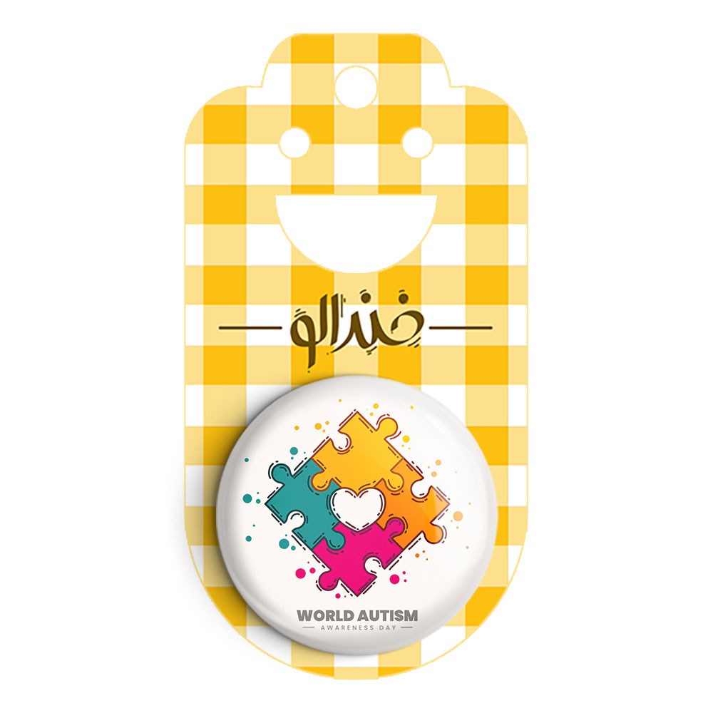 پیکسل 44 میلی متری اتیسم Autism خندالو با روکش سلفون حرارتی مات مخملی ضدخش و قطعه پشتی رنگی تولید شده است.پلاستیکی پشت پیکسل با سوزن یک تکه ثابت و بدون لغزش و جا به جایی، ایستایی بسیار بهتری نسبت به پشتی فلزی پیکسل دارند که این مهم در تولید این محصول نیز رعایت شده است.
