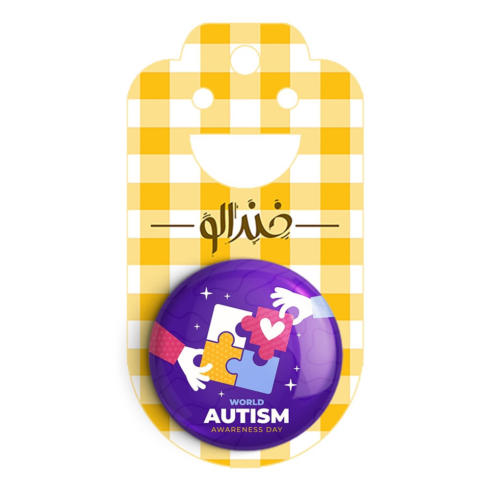 پیکسل 44 میلی متری اتیسم Autism خندالو با روکش سلفون حرارتی مات مخملی ضدخش و قطعه پشتی رنگی تولید شده است.پلاستیکی پشت پیکسل با سوزن یک تکه ثابت و بدون لغزش و جا به جایی، ایستایی بسیار بهتری نسبت به پشتی فلزی پیکسل دارند که این مهم در تولید این محصول نیز رعایت شده است.