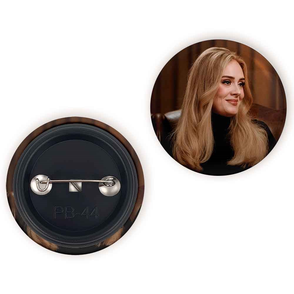 پیکسل 44 میلی متری ادل Adele خندالو با روکش سلفون حرارتی مات مخملی ضدخش و قطعه پشتی رنگی تولید شده است.پلاستیکی پشت پیکسل با سوزن یک تکه ثابت و بدون لغزش و جا به جایی، ایستایی بسیار بهتری نسبت به پشتی فلزی پیکسل دارند که این مهم در تولید این محصول نیز رعایت شده است.