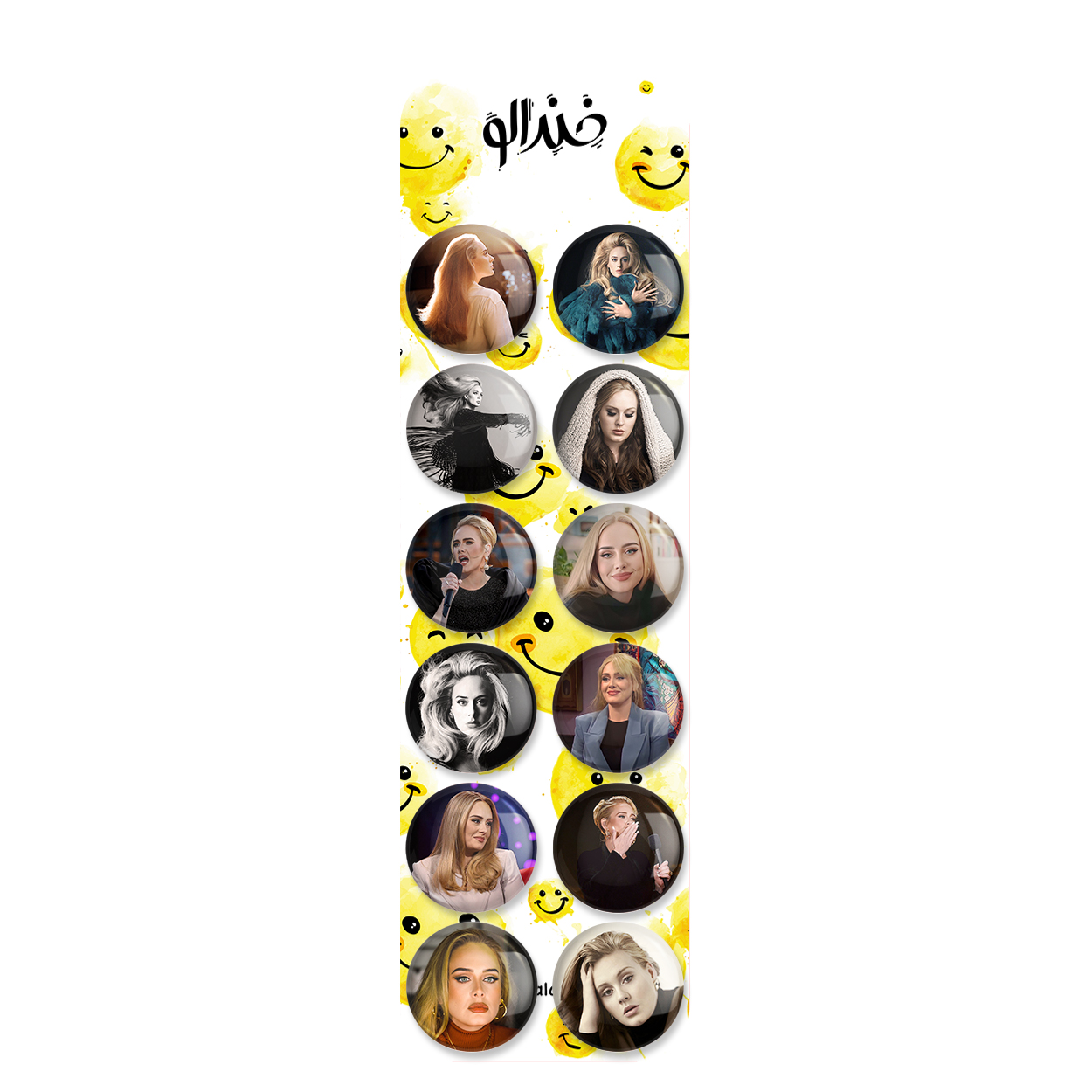 پک 12 عددی پیکسل خندالو طرح ادل (Adele) با روکش سلفون حرارتی براق ضدخش و قطعه پشتی رنگی تولید شده است. قطعات پشتی از میان 6 رنگ سفید، مشکی، صورتی، زرد، آبی و قرمز که با توجه به نوع و رنگبندی طرح روی پیکسل انتخاب شده اند تولید می شود و در هر بسته بندی مطابق عکس محصول می باشد. قطعات پلاستیکی پشت پیکسل با سوزن یک تکه ثابت و بدون لغزش و جا به جایی، ایستایی بسیار بهتری نسبت به پشتی فلزی پیکسل دارند که این مهم در تولید این محصول نیز رعایت شده است.
