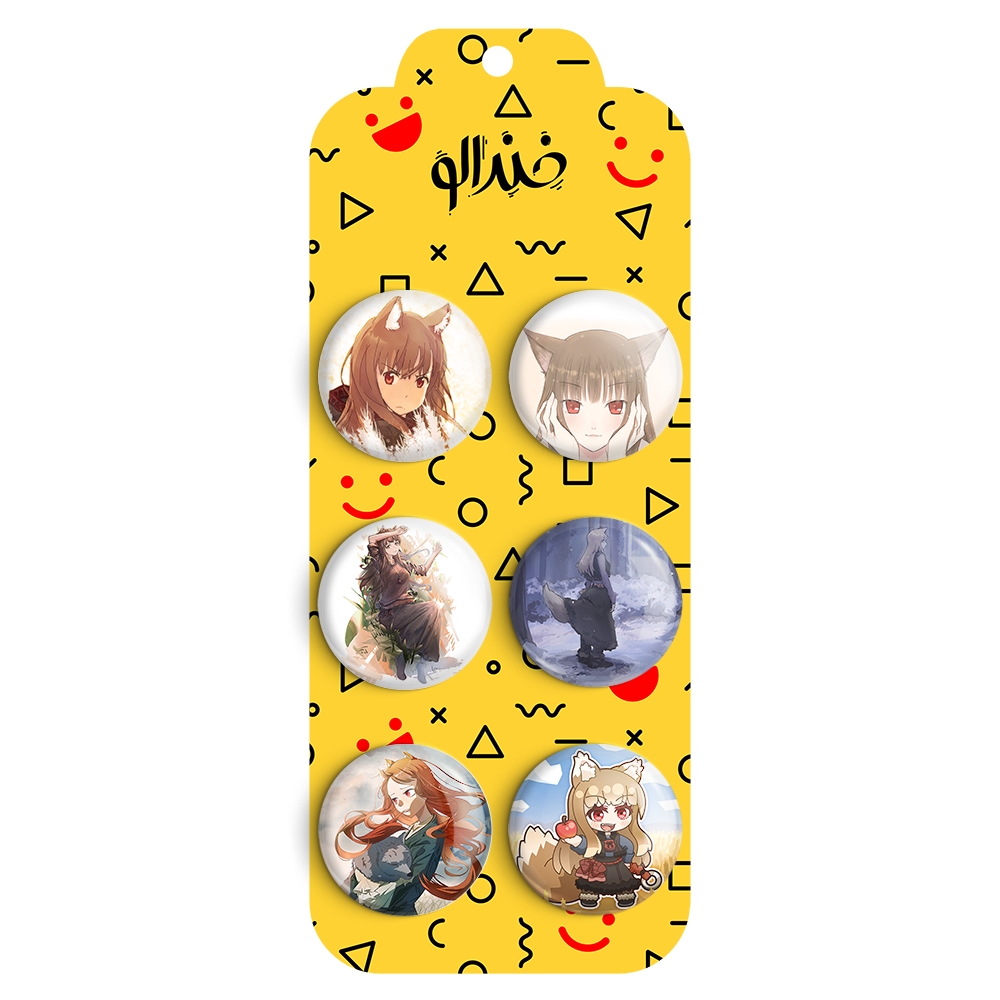 مجموعه 6 عددی پیکسل خندالو طرح ادویه و گرگ (Spice and Wolf) با روکش سلفون حرارتی براق ضدخش و قطعه پشتی رنگی تولید شده است. قطعات پشتی از میان 6 رنگ سفید، مشکی، صورتی، زرد، آبی و قرمز که با توجه به نوع و رنگبندی طرح روی پیکسل انتخاب شده اند تولید می شود و در هر بسته بندی مطابق عکس محصول می باشد. قطعات پلاستیکی پشت پیکسل با سوزن یک تکه ثابت و بدون لغزش و جا به جایی، ایستایی بسیار بهتری نسبت به پشتی فلزی پیکسل دارند که این مهم در تولید این محصول نیز رعایت شده است. چاپ پیکسل نیز با دستگاه های استاندارد و با بهترین سطح کیفی صورت گرفته و طرح با شفافیتی مثال زدنی و با سلفونی بدون شکست نور بر روی پیکسل نقش بسته است. همچنین بسته بندی جذاب و مینیمال پیکسل ها، آنها را مناسب هدیه کرده است..