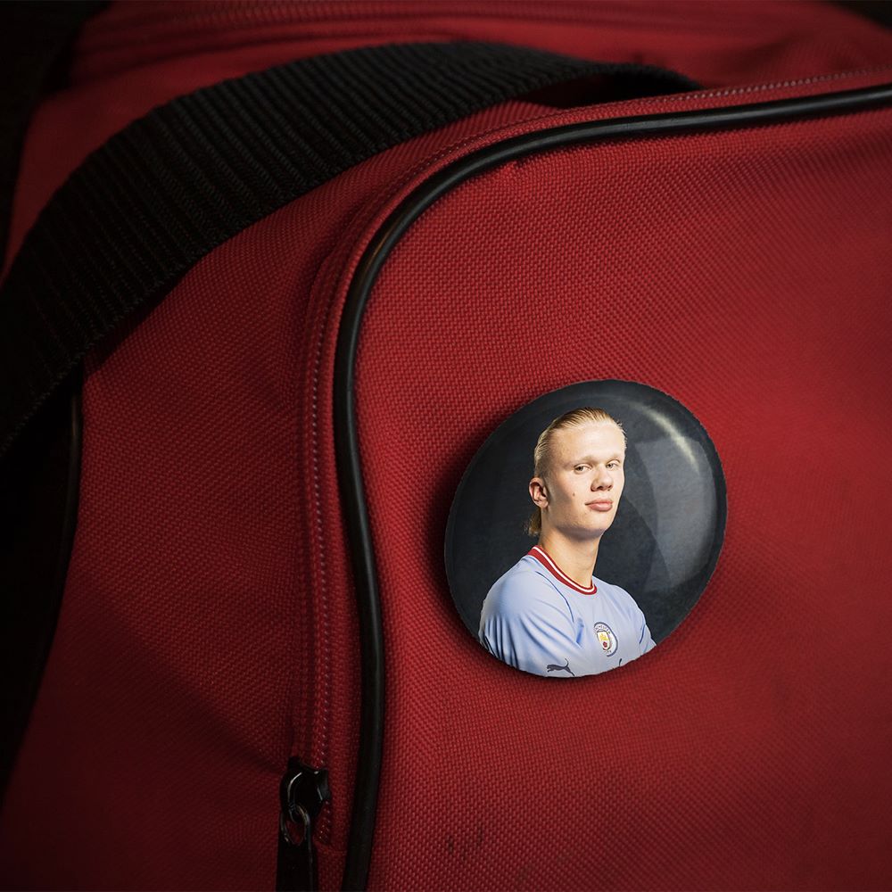 پیکسل 44 میلی متری ارلینگ هالند (Erling Haaland)خندالو با روکش سلفون حرارتی مات مخملی ضدخش و قطعه پشتی رنگی تولید شده است. قطعات پلاستیکی پشت پیکسل با سوزن یک تکه ثابت و بدون لغزش و جا به جایی، ایستایی بسیار بهتری نسبت به پشتی فلزی پیکسل دارند که این مهم در تولید این محصول نیز رعایت شده است.