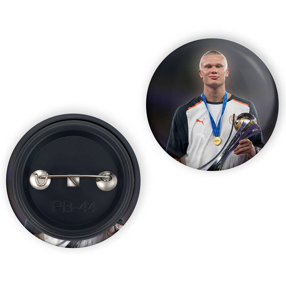 پیکسل 44 میلی متری ارلینگ هالند (Erling Haaland)خندالو با روکش سلفون حرارتی مات مخملی ضدخش و قطعه پشتی رنگی تولید شده است. قطعات پلاستیکی پشت پیکسل با سوزن یک تکه ثابت و بدون لغزش و جا به جایی، ایستایی بسیار بهتری نسبت به پشتی فلزی پیکسل دارند که این مهم در تولید این محصول نیز رعایت شده است.