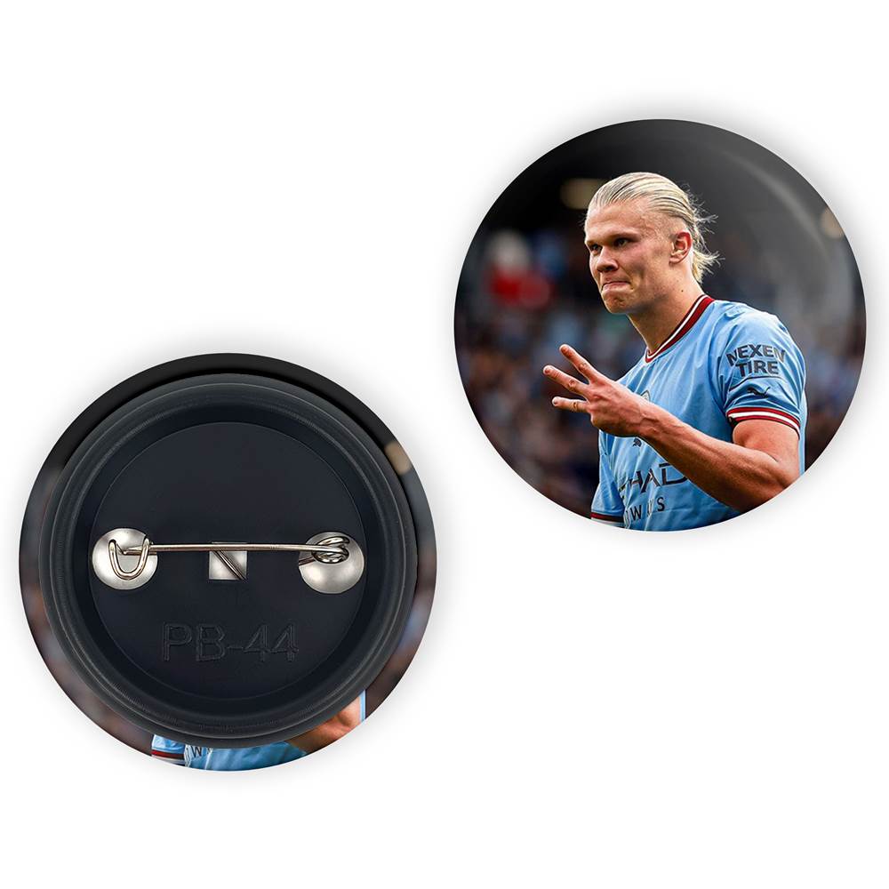پیکسل 44 میلی متری ارلینگ هالند (Erling Haaland)خندالو با روکش سلفون حرارتی مات مخملی ضدخش و قطعه پشتی رنگی تولید شده است. قطعات پلاستیکی پشت پیکسل با سوزن یک تکه ثابت و بدون لغزش و جا به جایی، ایستایی بسیار بهتری نسبت به پشتی فلزی پیکسل دارند که این مهم در تولید این محصول نیز رعایت شده است.