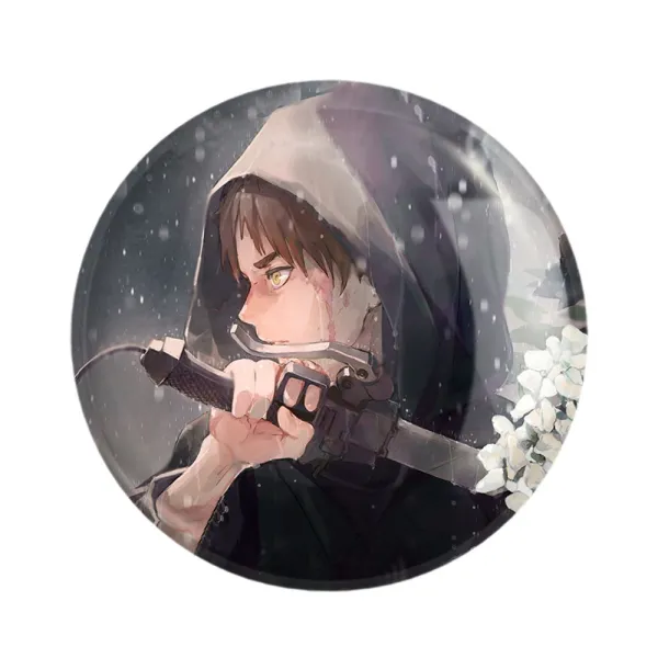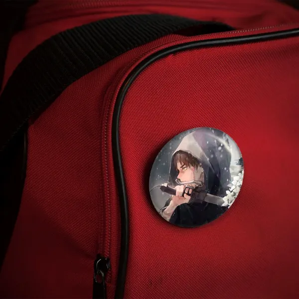 پیکسل 44 میلی متری ارن یگر انیمه اتک آن تایتان Attack on Titan خندالو با روکش سلفون حرارتی مات مخملی ضدخش و قطعه پشتی رنگی تولید شده است.پلاستیکی پشت پیکسل با سوزن یک تکه ثابت و بدون لغزش و جا به جایی، ایستایی بسیار بهتری نسبت به پشتی فلزی پیکسل دارند که این مهم در تولید این محصول نیز رعایت شده است.