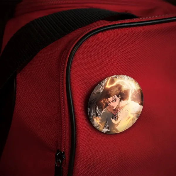 پیکسل 44 میلی متری ارن یگر انیمه اتک آن تایتان Attack on Titan خندالو با روکش سلفون حرارتی مات مخملی ضدخش و قطعه پشتی رنگی تولید شده است.پلاستیکی پشت پیکسل با سوزن یک تکه ثابت و بدون لغزش و جا به جایی، ایستایی بسیار بهتری نسبت به پشتی فلزی پیکسل دارند که این مهم در تولید این محصول نیز رعایت شده است.