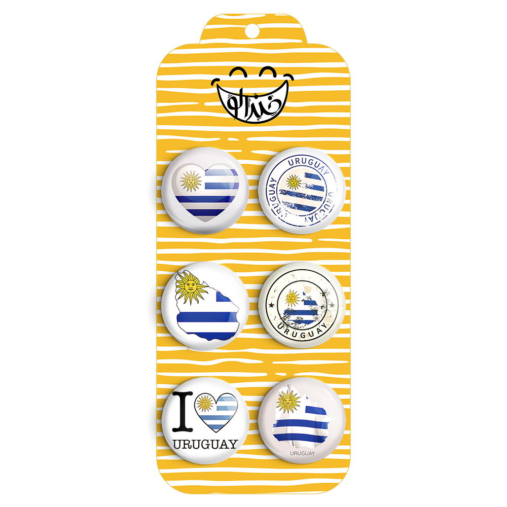 مجموعه 6 عددی پیکسل خندالو طرح اروگوئه با روکش سلفون حرارتی براق ضدخش و قطعه پشتی رنگی تولید شده است. قطعات پشتی از میان 6 رنگ سفید، مشکی، صورتی، زرد، آبی و قرمز که با توجه به نوع و رنگبندی طرح روی پیکسل انتخاب شده اند تولید می شود و در هر بسته بندی مطابق عکس محصول می باشد. قطعات پلاستیکی پشت پیکسل با سوزن یک تکه ثابت و بدون لغزش و جا به جایی، ایستایی بسیار بهتری نسبت به پشتی فلزی پیکسل دارند که این مهم در تولید این محصول نیز رعایت شده است. چاپ پیکسل نیز با دستگاه های استاندارد و با بهترین سطح کیفی صورت گرفته و طرح با شفافیتی مثال زدنی و با سلفونی بدون شکست نور بر روی پیکسل نقش بسته است. همچنین بسته بندی جذاب و مینیمال پیکسل ها، آنها را مناسب هدیه کرده است..