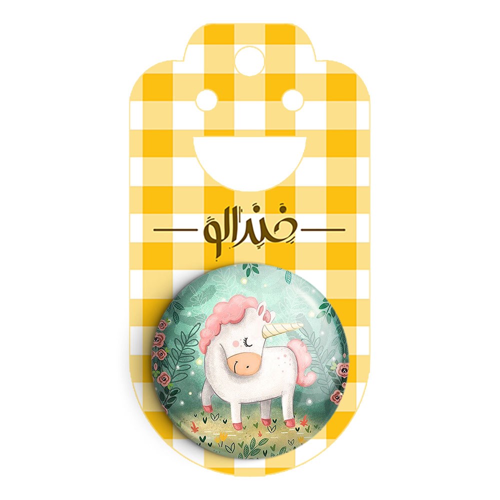 پیکسل 44 میلی متری اسب تک شاخ پونی خندالو با روکش سلفون حرارتی مات مخملی ضدخش و قطعه پشتی رنگی تولید شده است.پلاستیکی پشت پیکسل با سوزن یک تکه ثابت و بدون لغزش و جا به جایی، ایستایی بسیار بهتری نسبت به پشتی فلزی پیکسل دارند که این مهم در تولید این محصول نیز رعایت شده است.