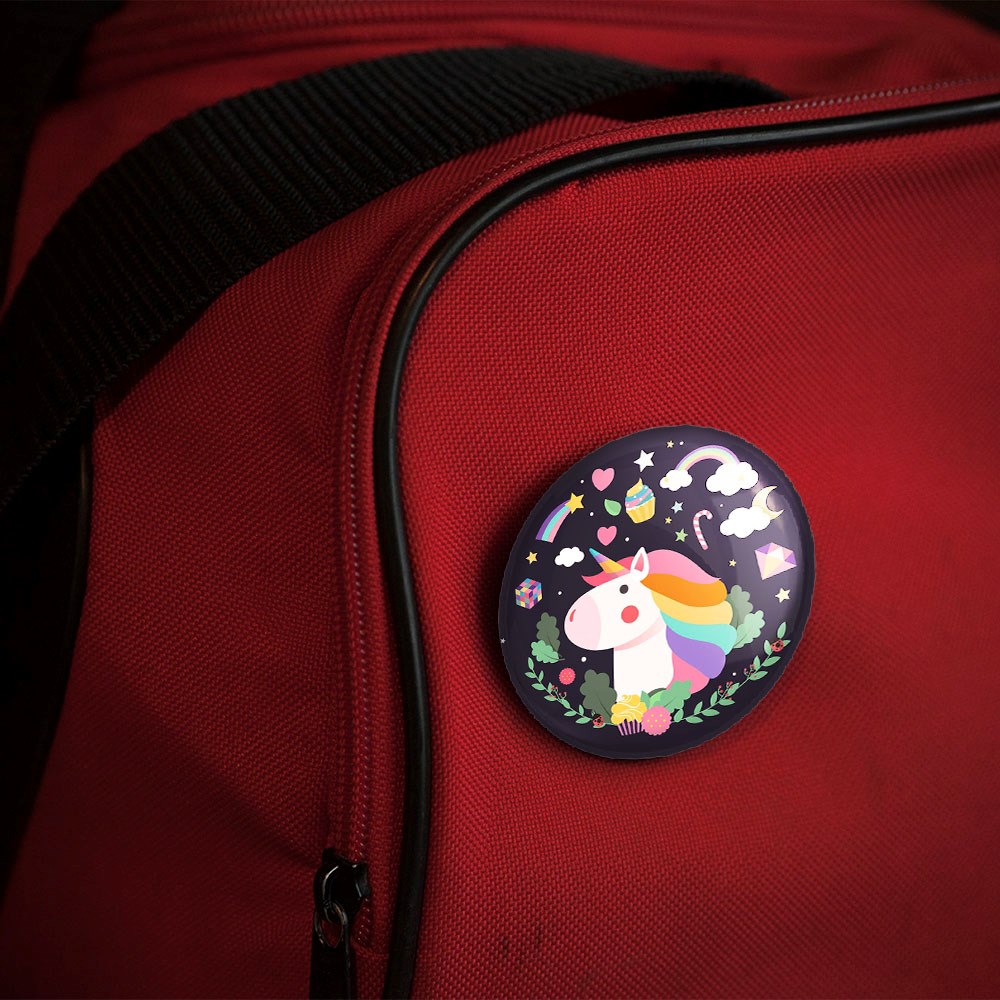 پیکسل 44 میلی متری اسب تک شاخ یونیکورن خندالو با روکش سلفون حرارتی مات مخملی ضدخش و قطعه پشتی رنگی تولید شده است.پلاستیکی پشت پیکسل با سوزن یک تکه ثابت و بدون لغزش و جا به جایی، ایستایی بسیار بهتری نسبت به پشتی فلزی پیکسل دارند که این مهم در تولید این محصول نیز رعایت شده است.