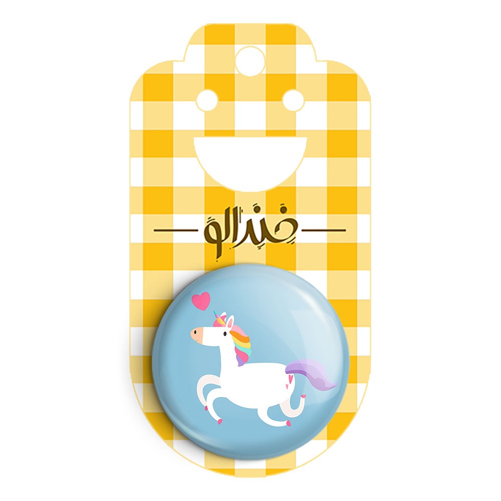 پیکسل 44 میلی متری اسب تک شاخ یونیکورن خندالو با روکش سلفون حرارتی مات مخملی ضدخش و قطعه پشتی رنگی تولید شده است.پلاستیکی پشت پیکسل با سوزن یک تکه ثابت و بدون لغزش و جا به جایی، ایستایی بسیار بهتری نسبت به پشتی فلزی پیکسل دارند که این مهم در تولید این محصول نیز رعایت شده است.