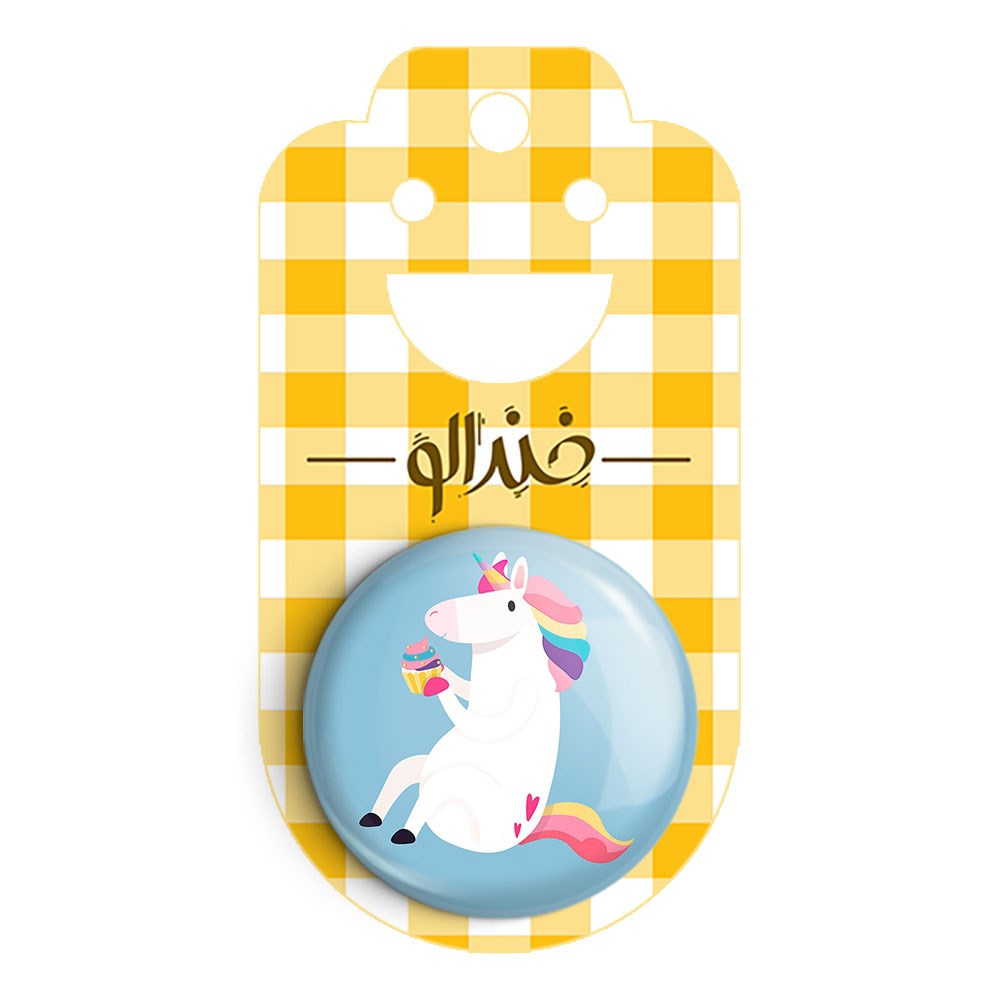 پیکسل 44 میلی متری اسب تک شاخ یونیکورن خندالو با روکش سلفون حرارتی مات مخملی ضدخش و قطعه پشتی رنگی تولید شده است.پلاستیکی پشت پیکسل با سوزن یک تکه ثابت و بدون لغزش و جا به جایی، ایستایی بسیار بهتری نسبت به پشتی فلزی پیکسل دارند که این مهم در تولید این محصول نیز رعایت شده است.