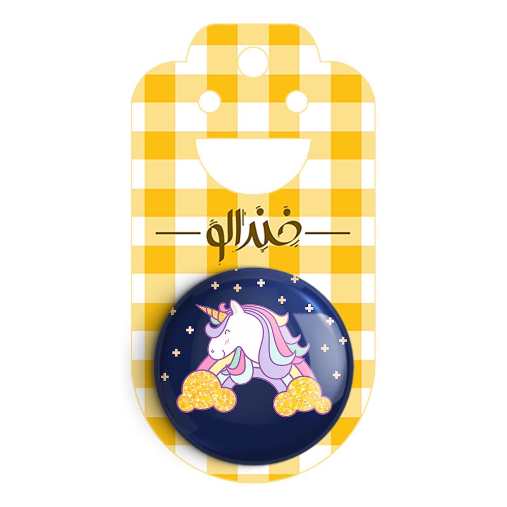 پیکسل 44 میلی متری اسب تک شاخ یونیکورن خندالو با روکش سلفون حرارتی مات مخملی ضدخش و قطعه پشتی رنگی تولید شده است.پلاستیکی پشت پیکسل با سوزن یک تکه ثابت و بدون لغزش و جا به جایی، ایستایی بسیار بهتری نسبت به پشتی فلزی پیکسل دارند که این مهم در تولید این محصول نیز رعایت شده است.