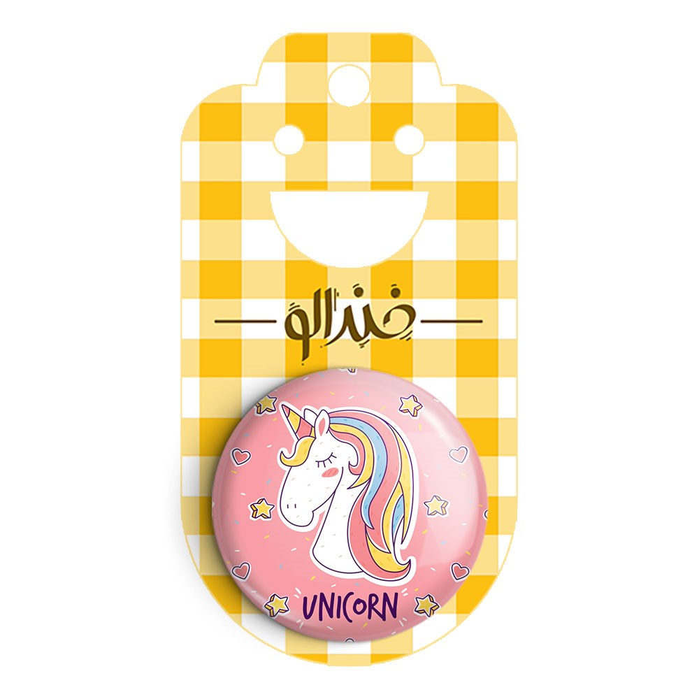 پیکسل 44 میلی متری اسب تک شاخ یونیکورن خندالو با روکش سلفون حرارتی مات مخملی ضدخش و قطعه پشتی رنگی تولید شده است.پلاستیکی پشت پیکسل با سوزن یک تکه ثابت و بدون لغزش و جا به جایی، ایستایی بسیار بهتری نسبت به پشتی فلزی پیکسل دارند که این مهم در تولید این محصول نیز رعایت شده است.