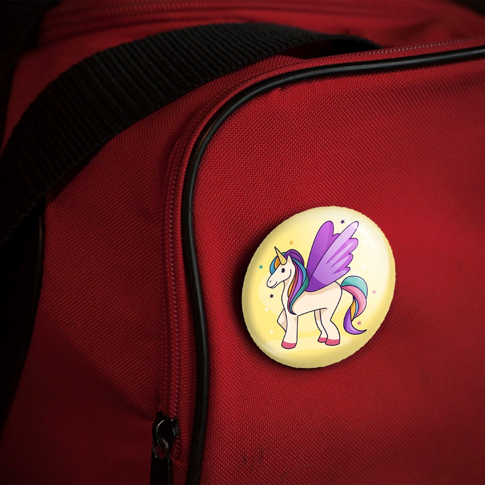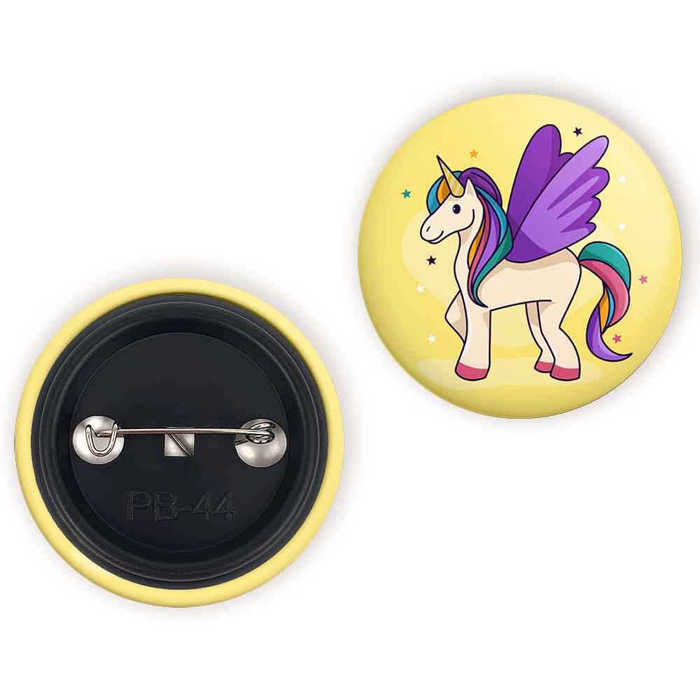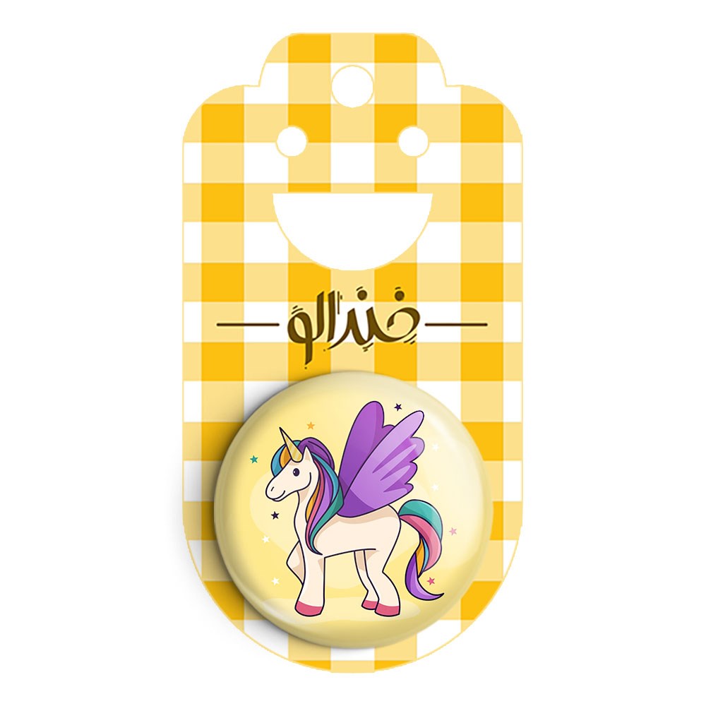 پیکسل 44 میلی متری اسب تک شاخ یونیکورن خندالو با روکش سلفون حرارتی مات مخملی ضدخش و قطعه پشتی رنگی تولید شده است.پلاستیکی پشت پیکسل با سوزن یک تکه ثابت و بدون لغزش و جا به جایی، ایستایی بسیار بهتری نسبت به پشتی فلزی پیکسل دارند که این مهم در تولید این محصول نیز رعایت شده است.