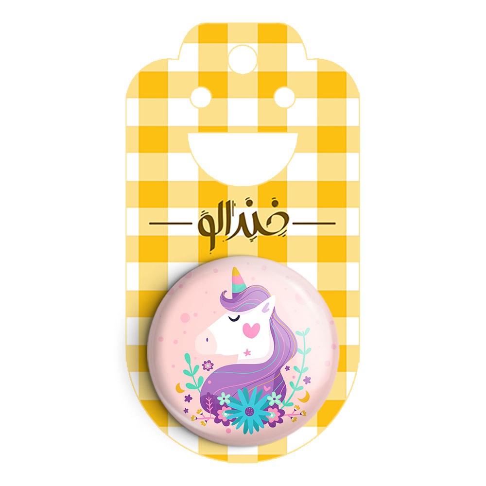 پیکسل 44 میلی متری اسب تک شاخ یونیکورن خندالو با روکش سلفون حرارتی مات مخملی ضدخش و قطعه پشتی رنگی تولید شده است.پلاستیکی پشت پیکسل با سوزن یک تکه ثابت و بدون لغزش و جا به جایی، ایستایی بسیار بهتری نسبت به پشتی فلزی پیکسل دارند که این مهم در تولید این محصول نیز رعایت شده است.