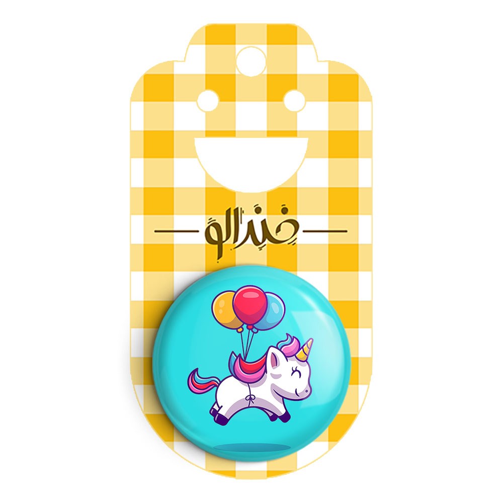 پیکسل 44 میلی متری اسب تک شاخ یونیکورن خندالو با روکش سلفون حرارتی مات مخملی ضدخش و قطعه پشتی رنگی تولید شده است.پلاستیکی پشت پیکسل با سوزن یک تکه ثابت و بدون لغزش و جا به جایی، ایستایی بسیار بهتری نسبت به پشتی فلزی پیکسل دارند که این مهم در تولید این محصول نیز رعایت شده است.