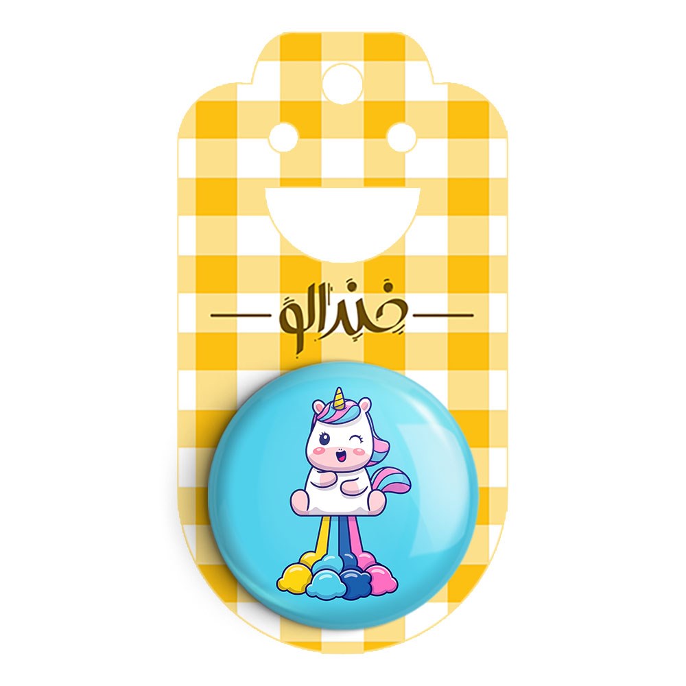 پیکسل 44 میلی متری اسب تک شاخ یونیکورن خندالو با روکش سلفون حرارتی مات مخملی ضدخش و قطعه پشتی رنگی تولید شده است.پلاستیکی پشت پیکسل با سوزن یک تکه ثابت و بدون لغزش و جا به جایی، ایستایی بسیار بهتری نسبت به پشتی فلزی پیکسل دارند که این مهم در تولید این محصول نیز رعایت شده است.