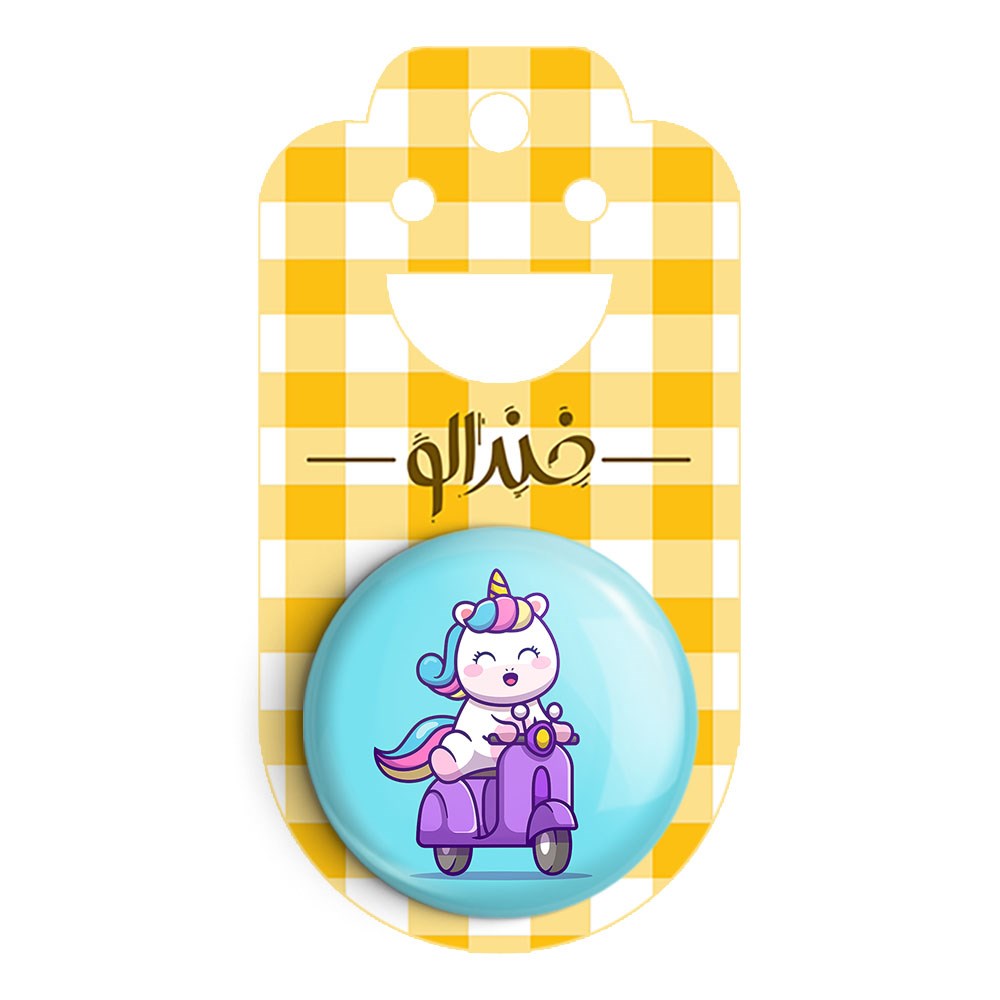 پیکسل 44 میلی متری اسب تک شاخ یونیکورن خندالو با روکش سلفون حرارتی مات مخملی ضدخش و قطعه پشتی رنگی تولید شده است.پلاستیکی پشت پیکسل با سوزن یک تکه ثابت و بدون لغزش و جا به جایی، ایستایی بسیار بهتری نسبت به پشتی فلزی پیکسل دارند که این مهم در تولید این محصول نیز رعایت شده است.