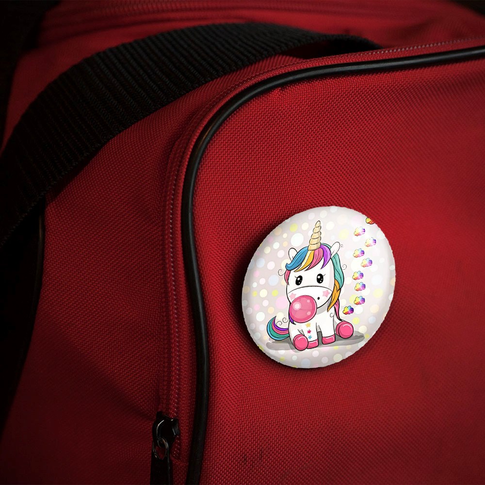 پیکسل 44 میلی متری اسب تک شاخ یونیکورن خندالو با روکش سلفون حرارتی مات مخملی ضدخش و قطعه پشتی رنگی تولید شده است.پلاستیکی پشت پیکسل با سوزن یک تکه ثابت و بدون لغزش و جا به جایی، ایستایی بسیار بهتری نسبت به پشتی فلزی پیکسل دارند که این مهم در تولید این محصول نیز رعایت شده است.