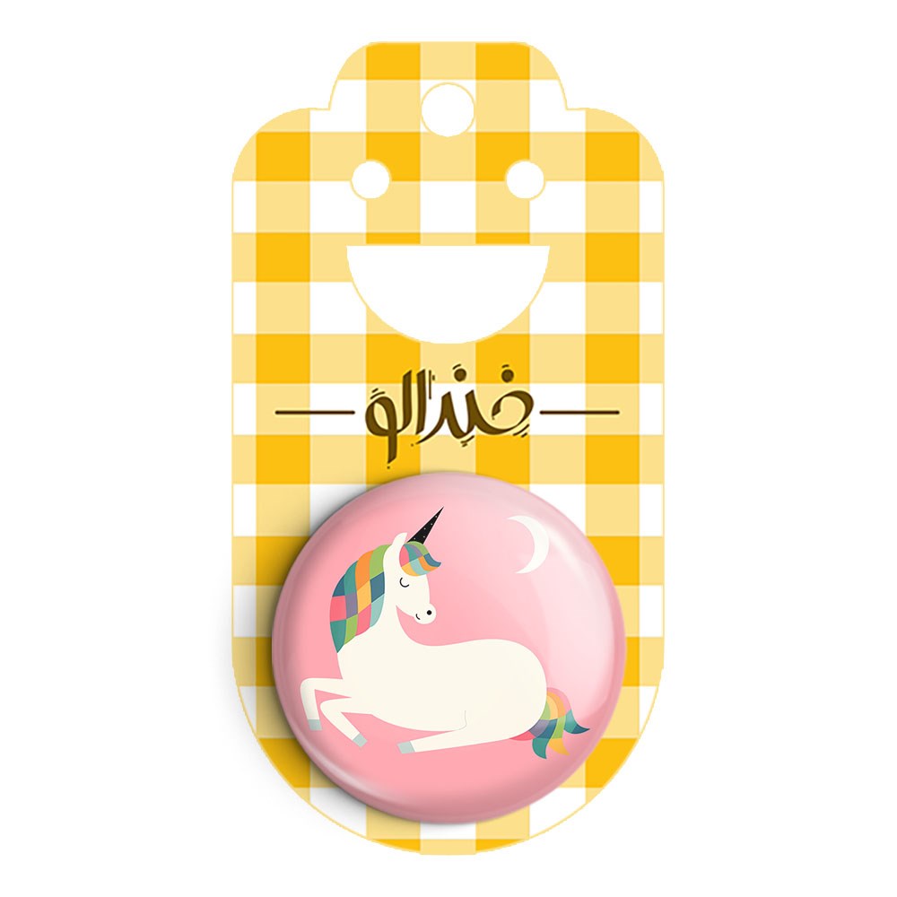 پیکسل 44 میلی متری اسب تک شاخ یونیکورن خندالو با روکش سلفون حرارتی مات مخملی ضدخش و قطعه پشتی رنگی تولید شده است.پلاستیکی پشت پیکسل با سوزن یک تکه ثابت و بدون لغزش و جا به جایی، ایستایی بسیار بهتری نسبت به پشتی فلزی پیکسل دارند که این مهم در تولید این محصول نیز رعایت شده است.