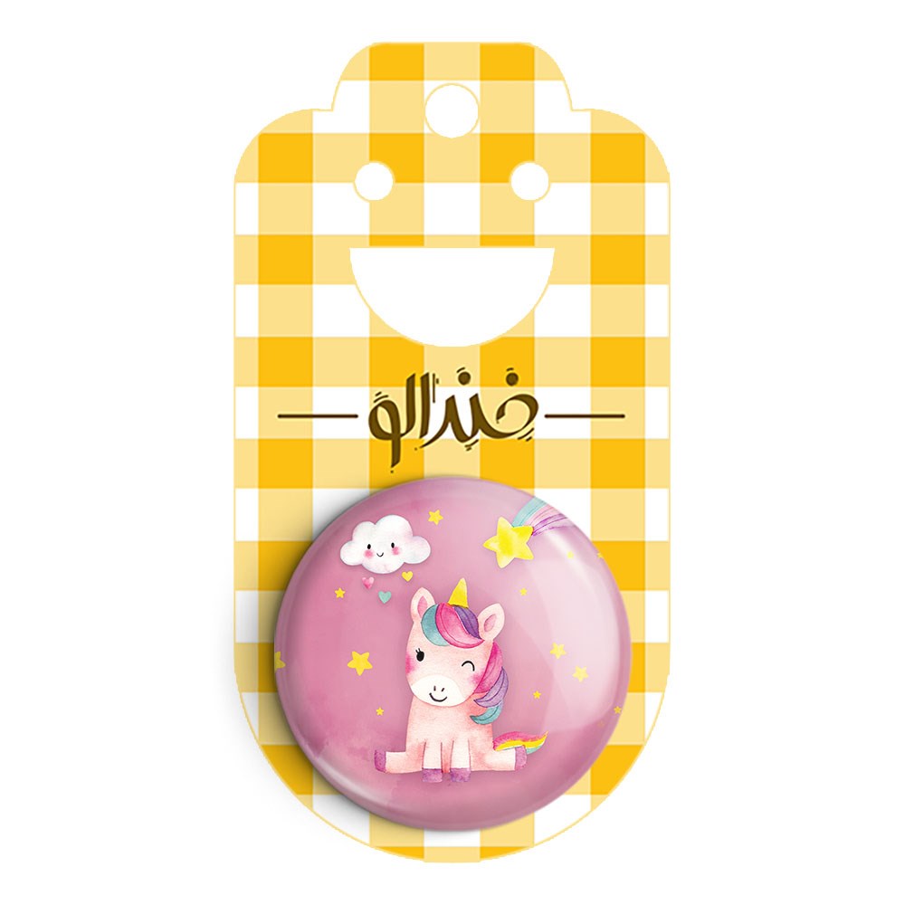 پیکسل 44 میلی متری اسب تک شاخ یونیکورن خندالو با روکش سلفون حرارتی مات مخملی ضدخش و قطعه پشتی رنگی تولید شده است.پلاستیکی پشت پیکسل با سوزن یک تکه ثابت و بدون لغزش و جا به جایی، ایستایی بسیار بهتری نسبت به پشتی فلزی پیکسل دارند که این مهم در تولید این محصول نیز رعایت شده است.