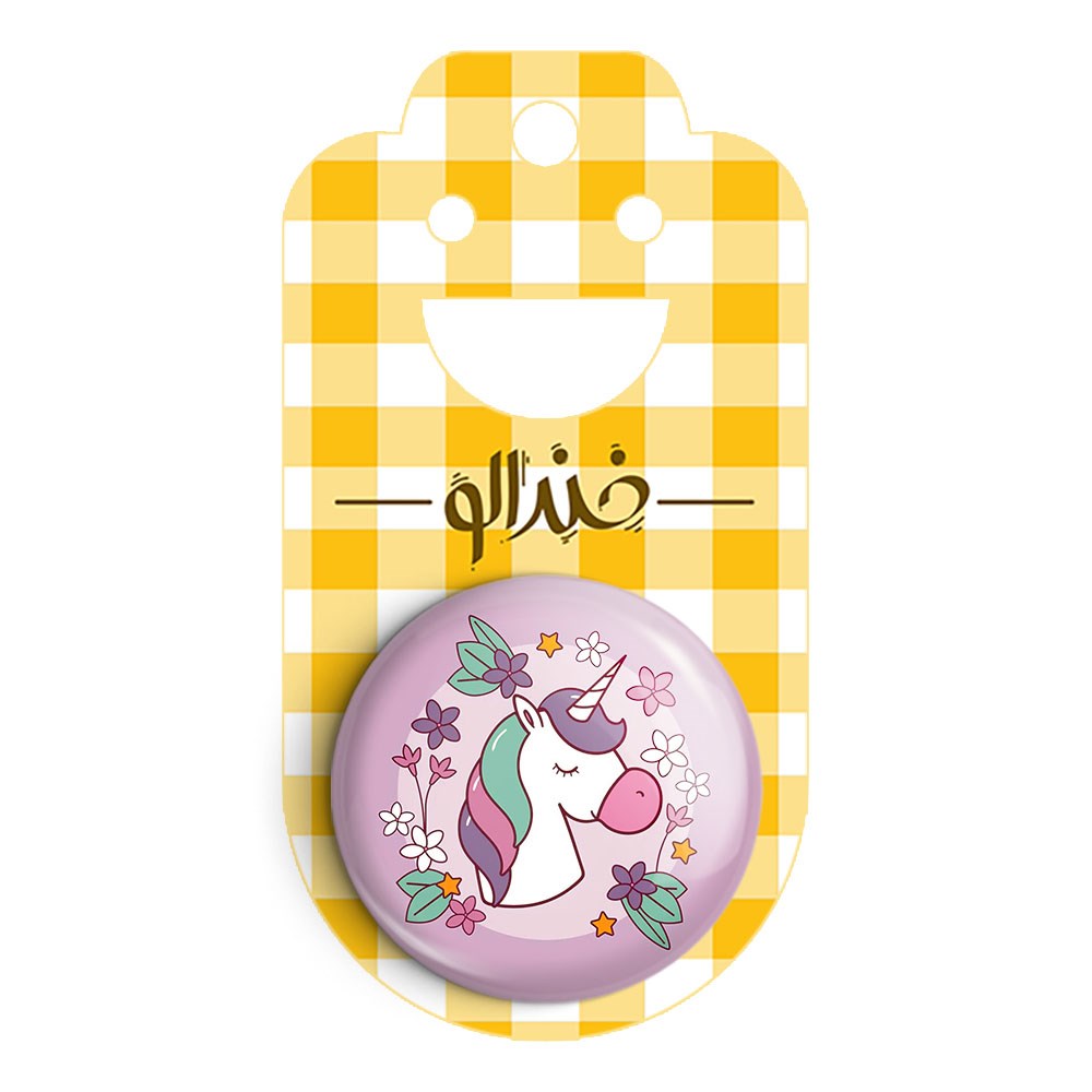 پیکسل 44 میلی متری اسب تک شاخ خندالو با روکش سلفون حرارتی مات مخملی ضدخش و قطعه پشتی رنگی تولید شده است.پلاستیکی پشت پیکسل با سوزن یک تکه ثابت و بدون لغزش و جا به جایی، ایستایی بسیار بهتری نسبت به پشتی فلزی پیکسل دارند که این مهم در تولید این محصول نیز رعایت شده است.