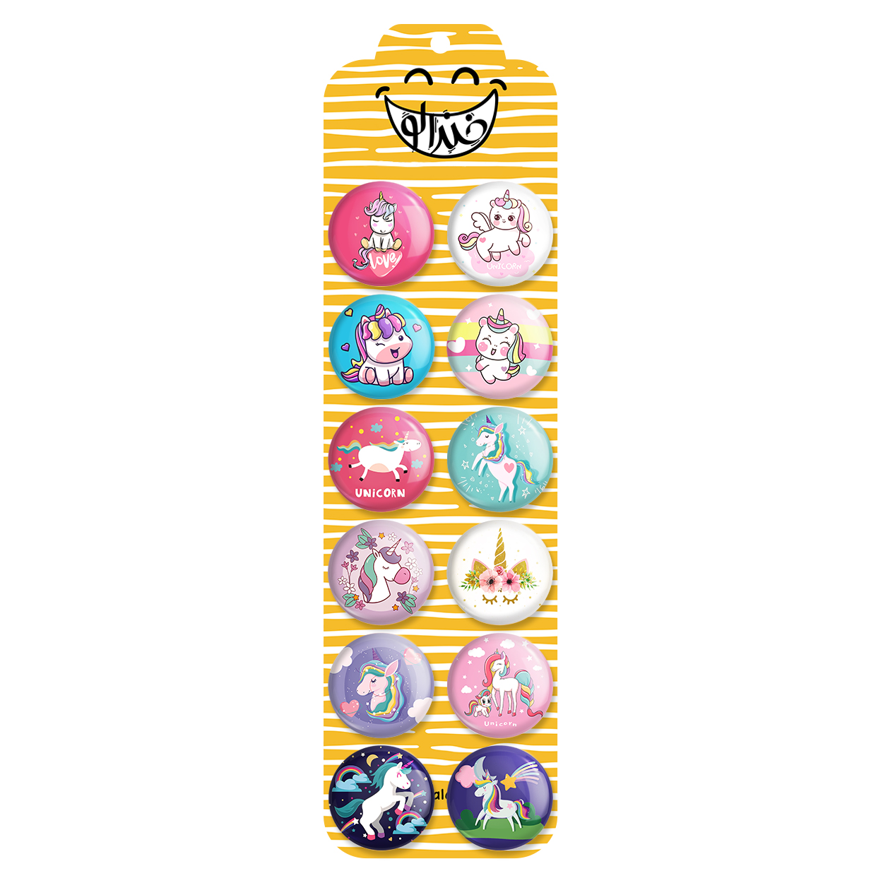 پک 12 عددی پیکسل خندالو طرح اسب تک شاخ (Unicorn) با روکش سلفون حرارتی براق ضدخش و قطعه پشتی رنگی تولید شده است. قطعات پشتی از میان 6 رنگ سفید، مشکی، صورتی، زرد، آبی و قرمز که با توجه به نوع و رنگبندی طرح روی پیکسل انتخاب شده اند تولید می شود و در هر بسته بندی مطابق عکس محصول می باشد. قطعات پلاستیکی پشت پیکسل با سوزن یک تکه ثابت و بدون لغزش و جا به جایی، ایستایی بسیار بهتری نسبت به پشتی فلزی پیکسل دارند که این مهم در تولید این محصول نیز رعایت شده است.