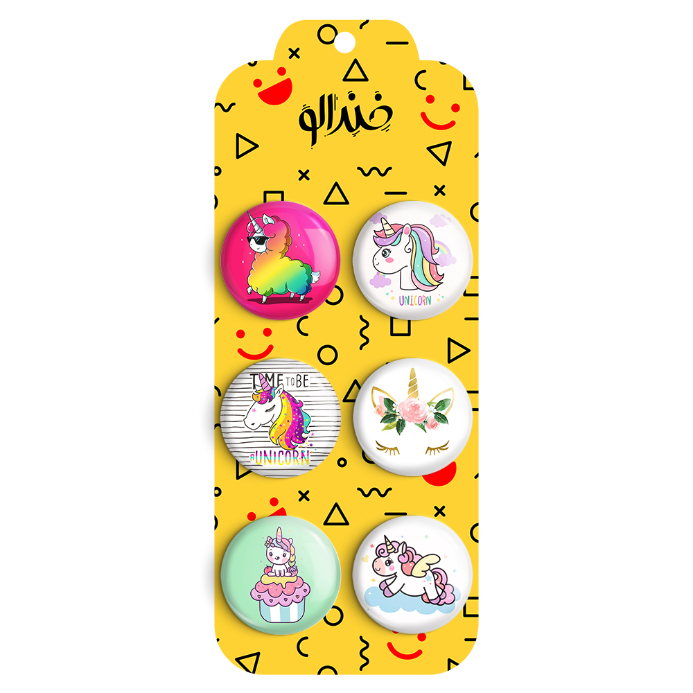 مجموعه 6 عددی پیکسل خندالو طرح اسب تک شاخ (Unicorn) با روکش سلفون حرارتی براق ضدخش و قطعه پشتی رنگی تولید شده است. قطعات پشتی از میان 6 رنگ سفید، مشکی، صورتی، زرد، آبی و قرمز که با توجه به نوع و رنگبندی طرح روی پیکسل انتخاب شده اند تولید می شود و در هر بسته بندی مطابق عکس محصول می باشد.